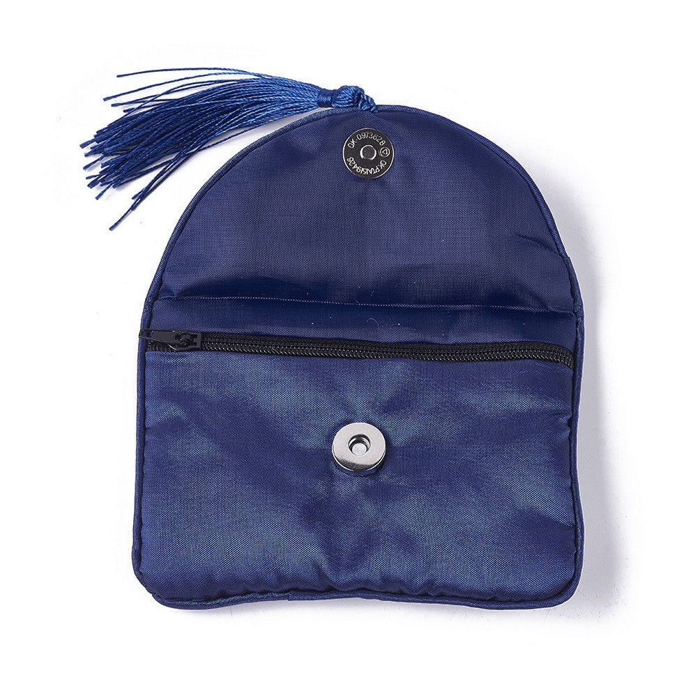 10 pc Embroidery Cloth Zip Pouches, with Tassels and Stainless Steel Snap Button, Rectangle, Midnight Blue, 12x8.5cm