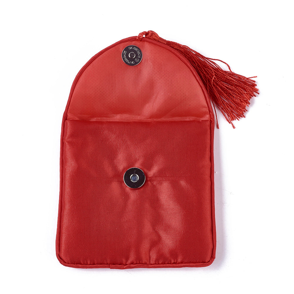 Embroidery Cloth Pouches, with Tassels and Stainless Steel Snap Button, Square, Red
