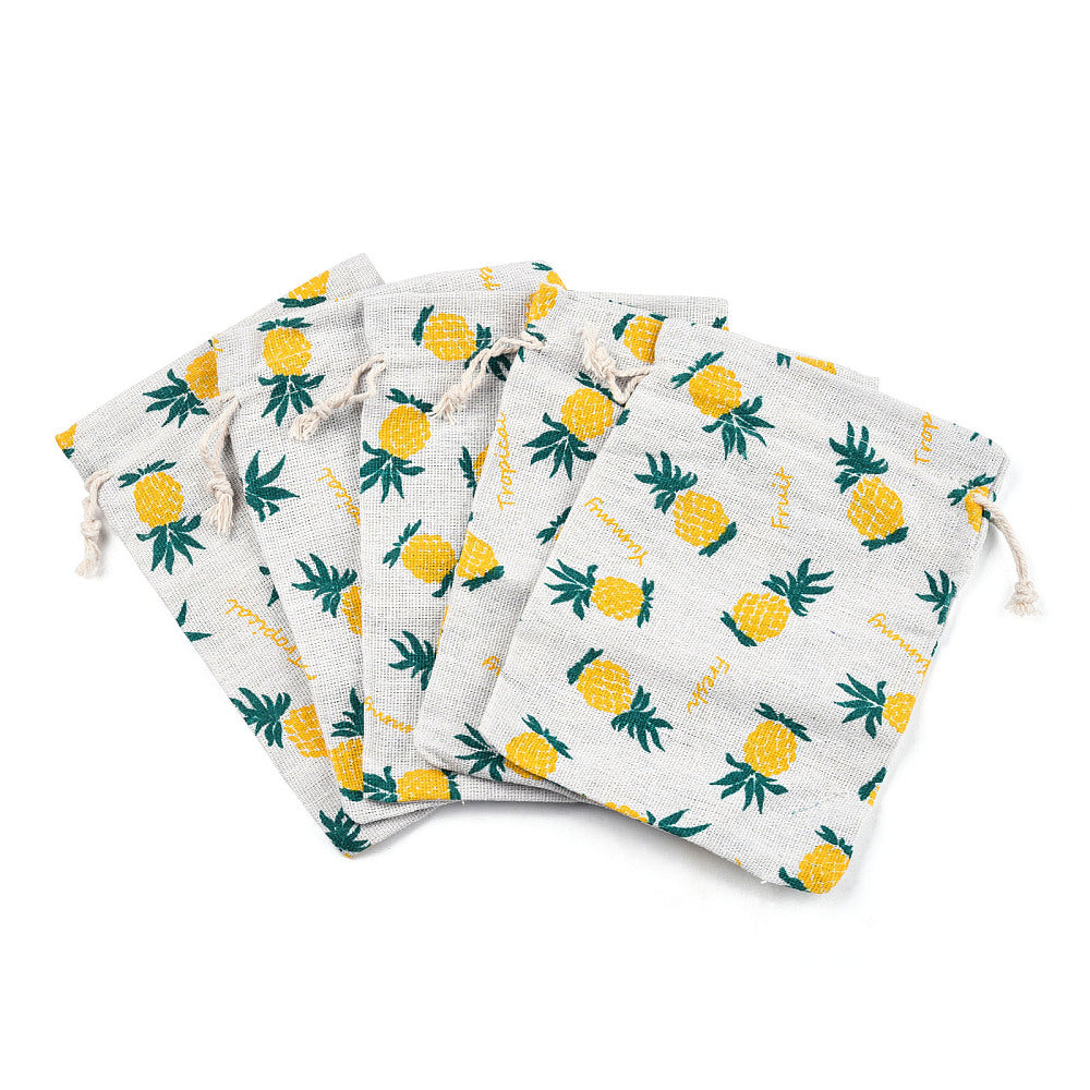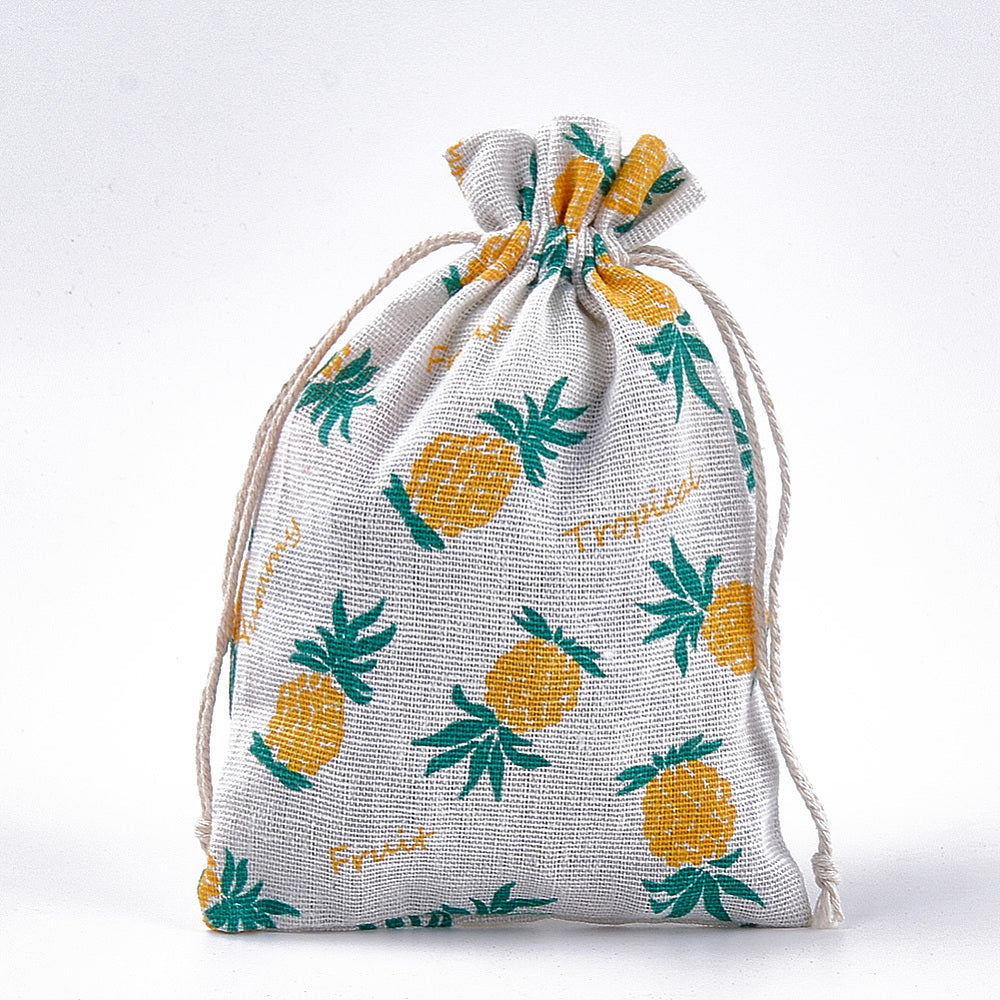 50 pc Polycotton(Polyester Cotton) Packing Pouches Drawstring Bags, with Pineapple Printed, Colorful, 18x13cm