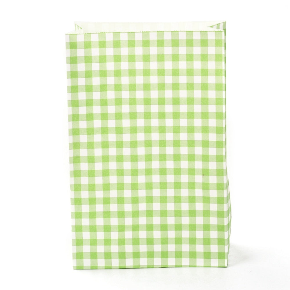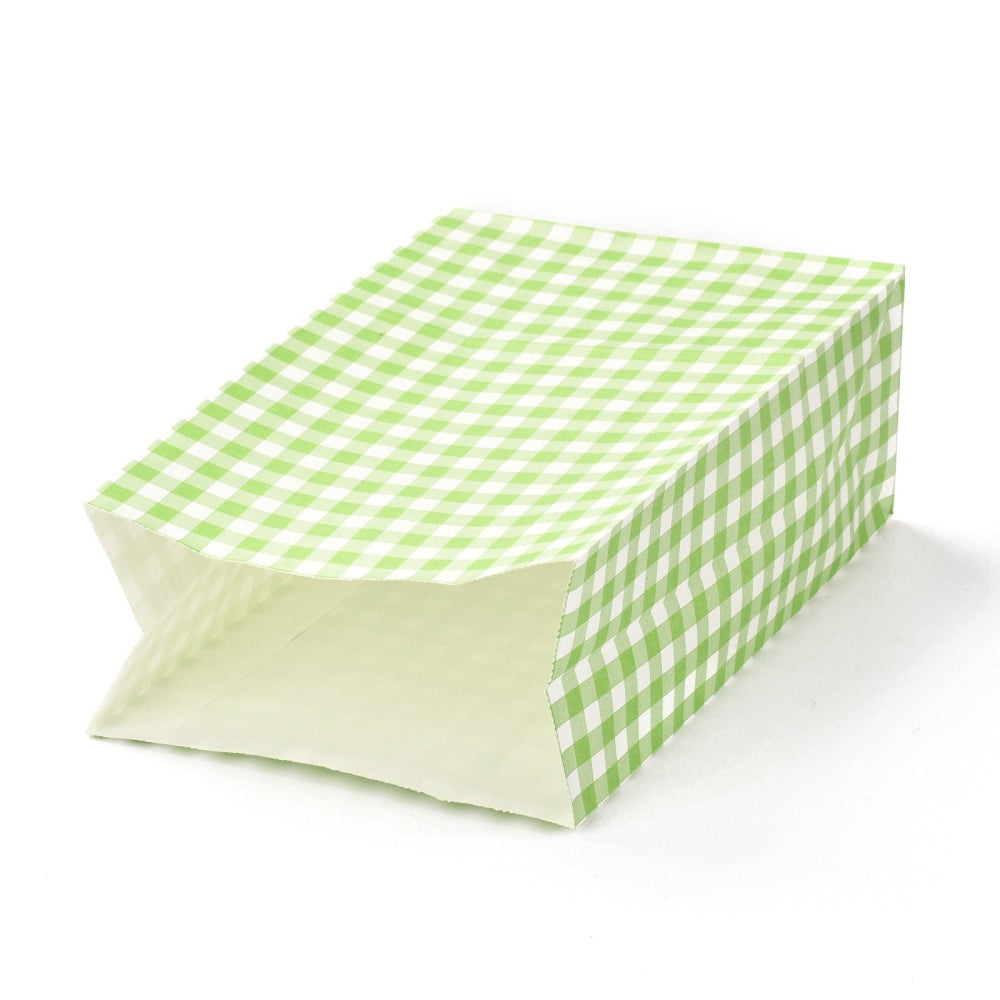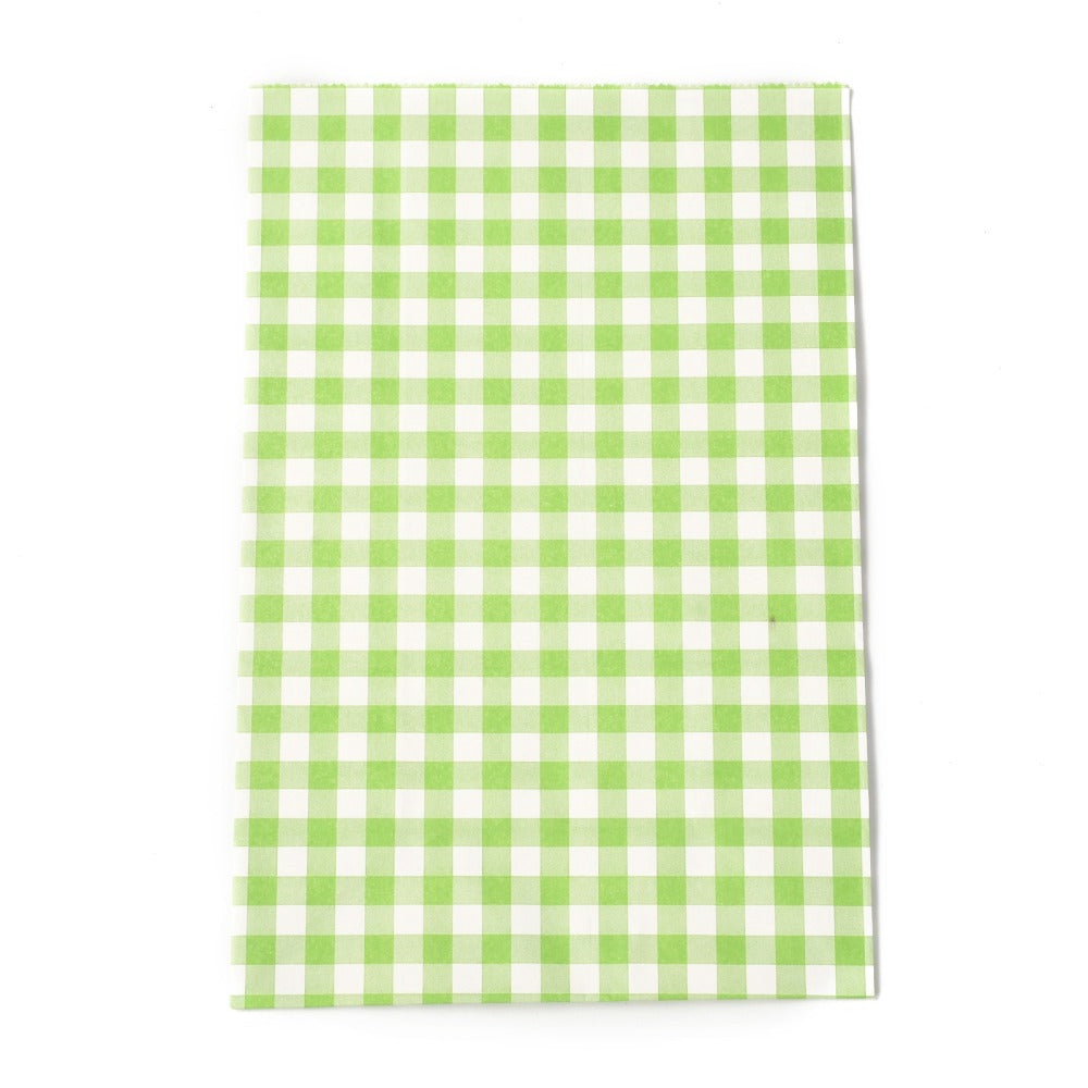 100 pc Rectangle with Tartan Pattern Paper Bags, No Handle, for Gift & Food Bags, Yellow Green, 23x15x0.1cm