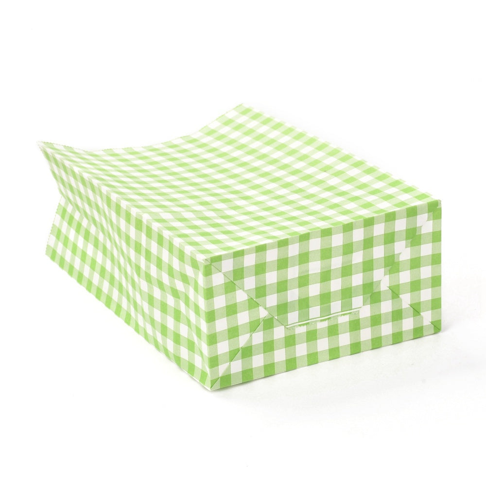 Rectangle with Tartan Pattern Paper Bags, No Handle, for Gift & Food Bags, Yellow Green