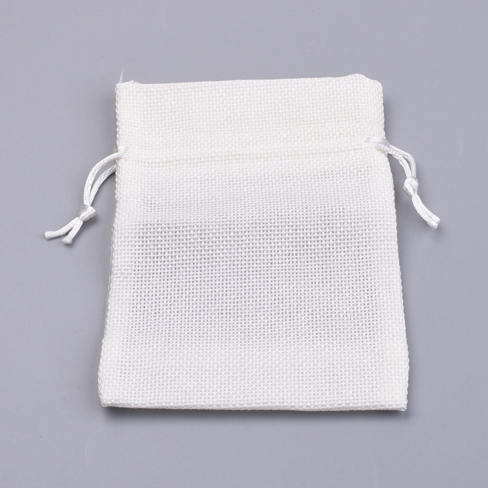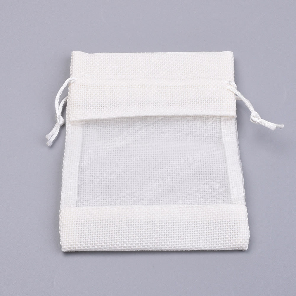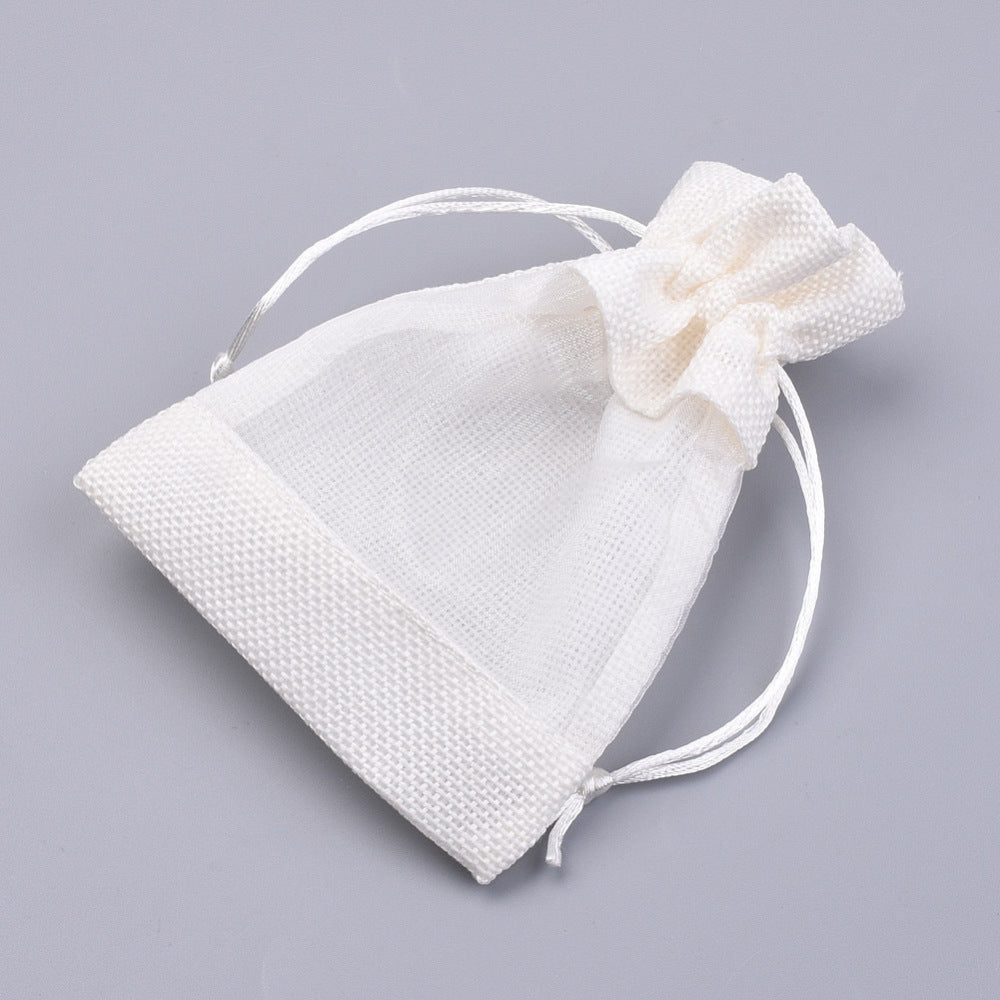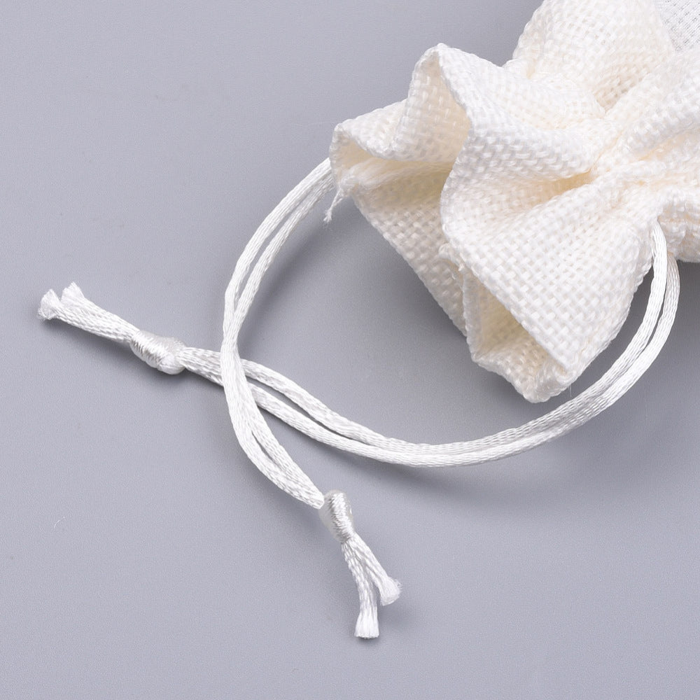 Cotton Packing Pouches, Drawstring Bags, with Organza Ribbons, Creamy White