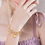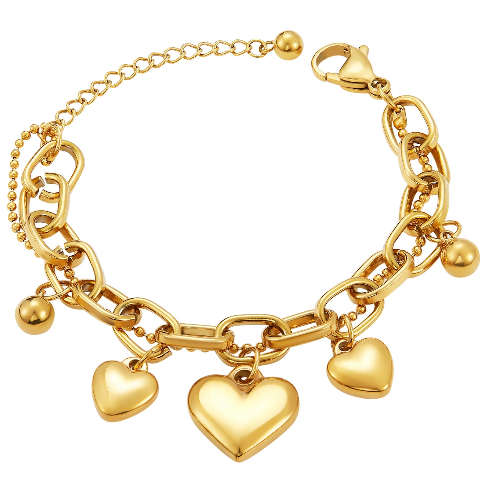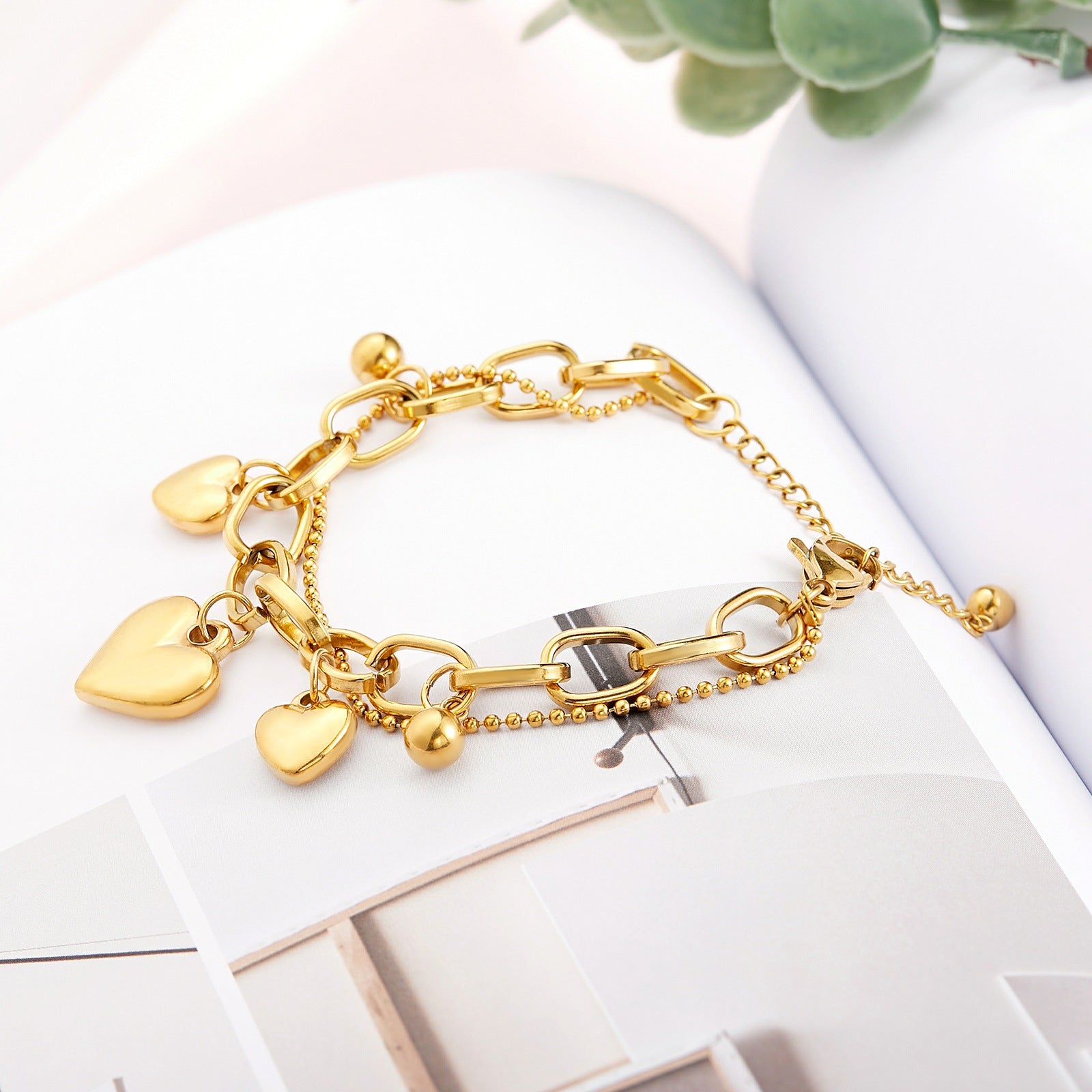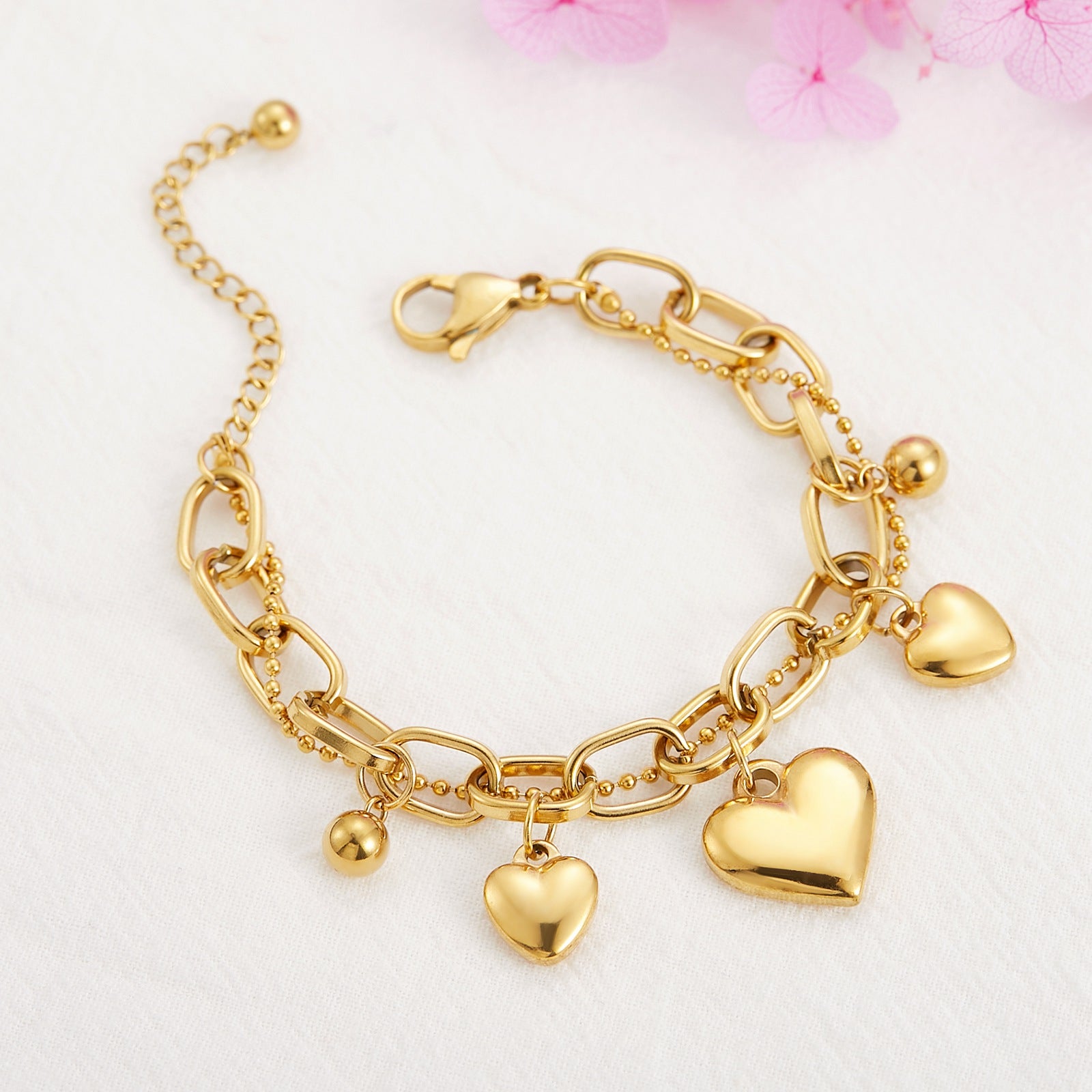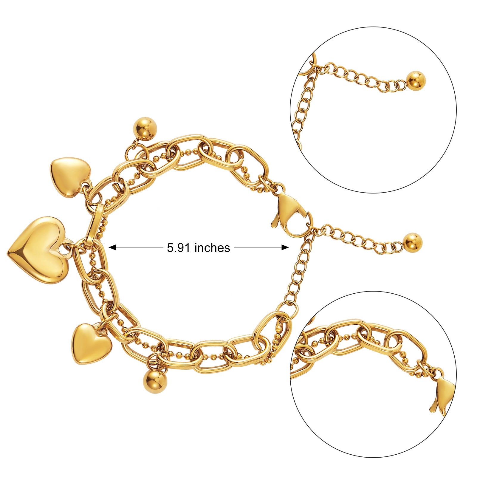CRASPIRE Stainless Steel Heart Charm Bracelets for Women, Multi-strand Bracelets, with Cable Chains & Ball Chains, Golden
