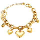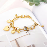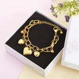 Stainless Steel Heart Charm Bracelets for Women, Multi-strand Bracelets, with Cable Chains & Ball Chains, Golden