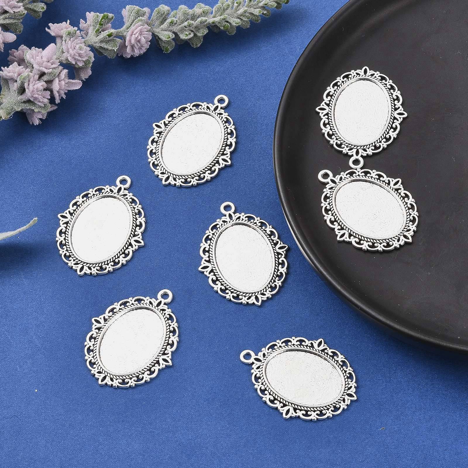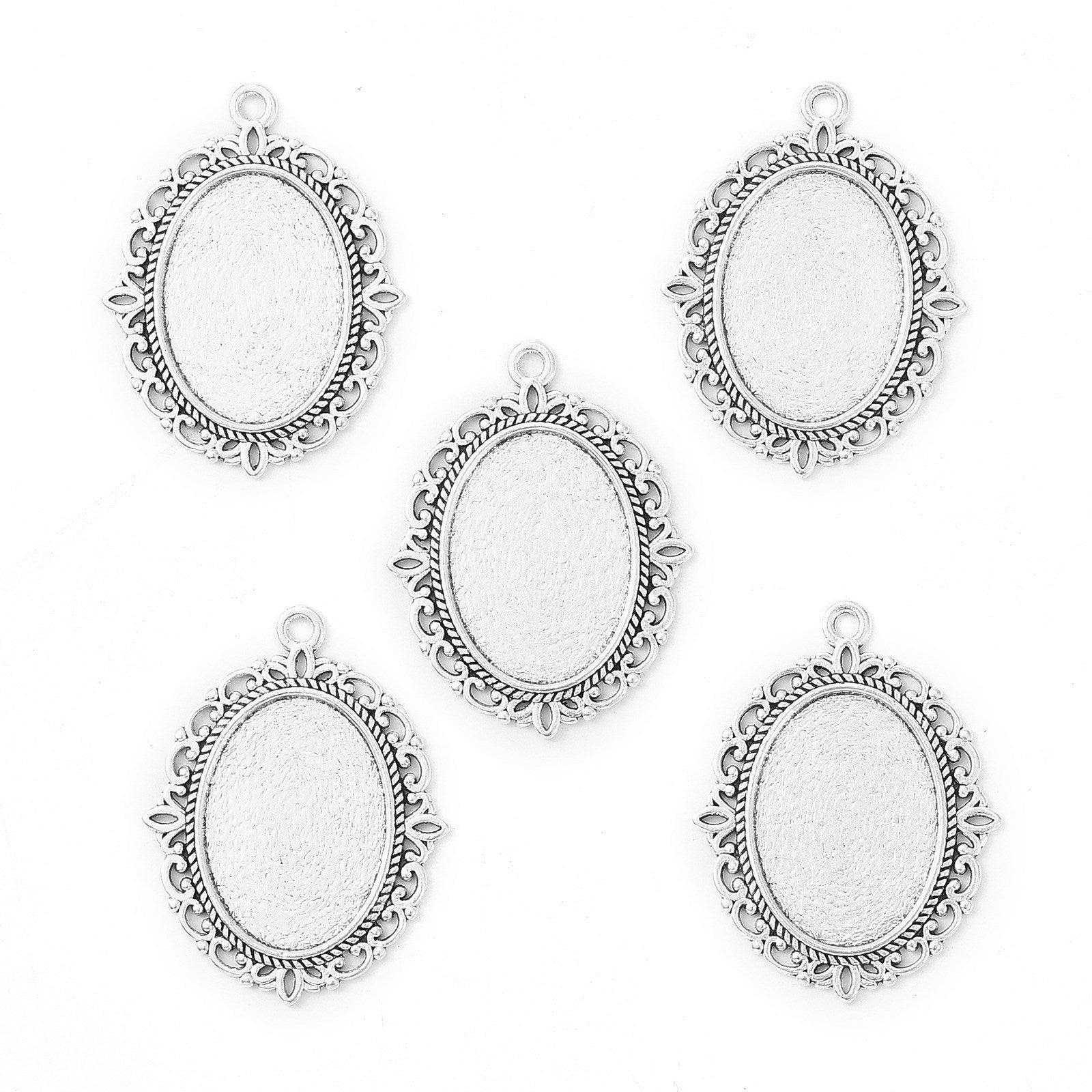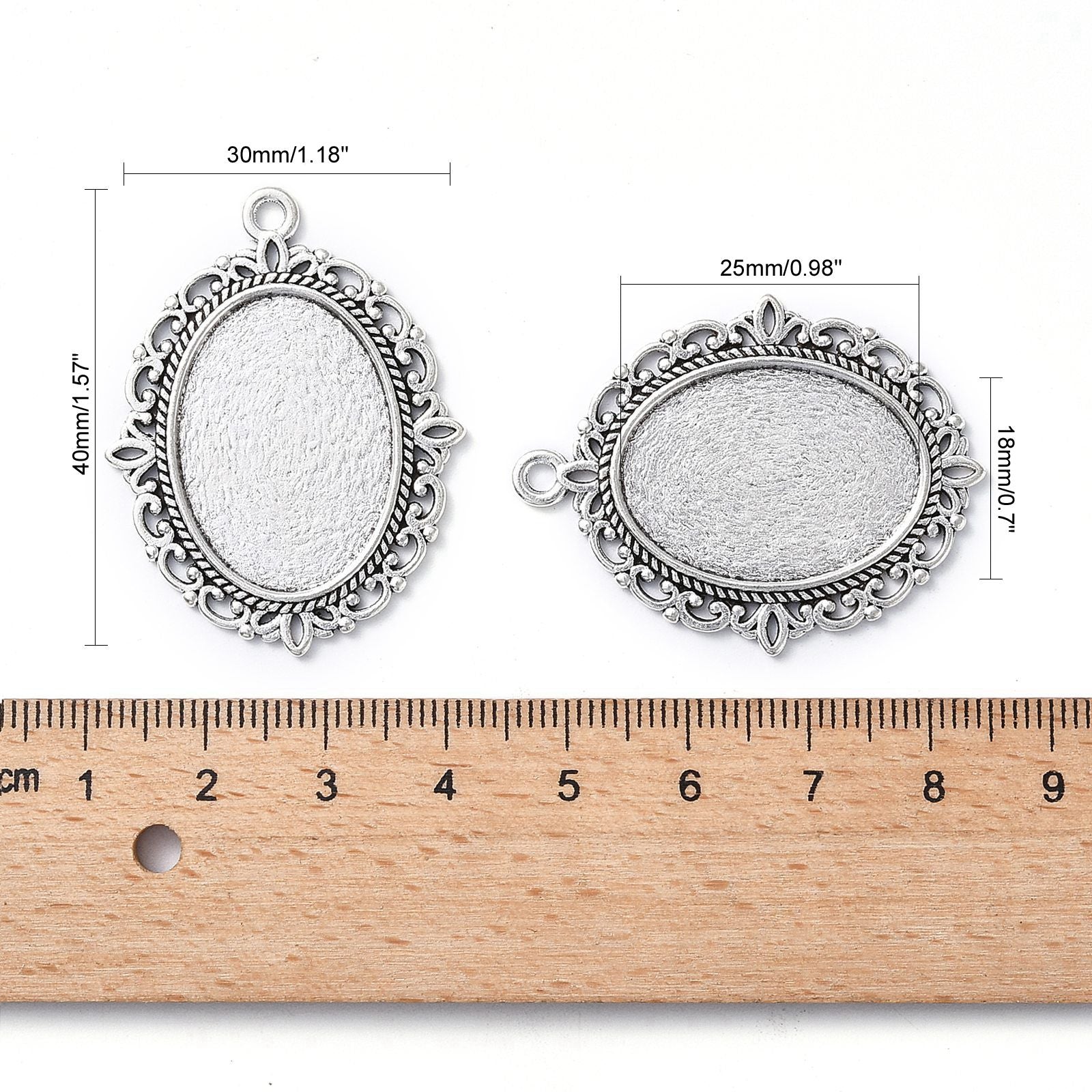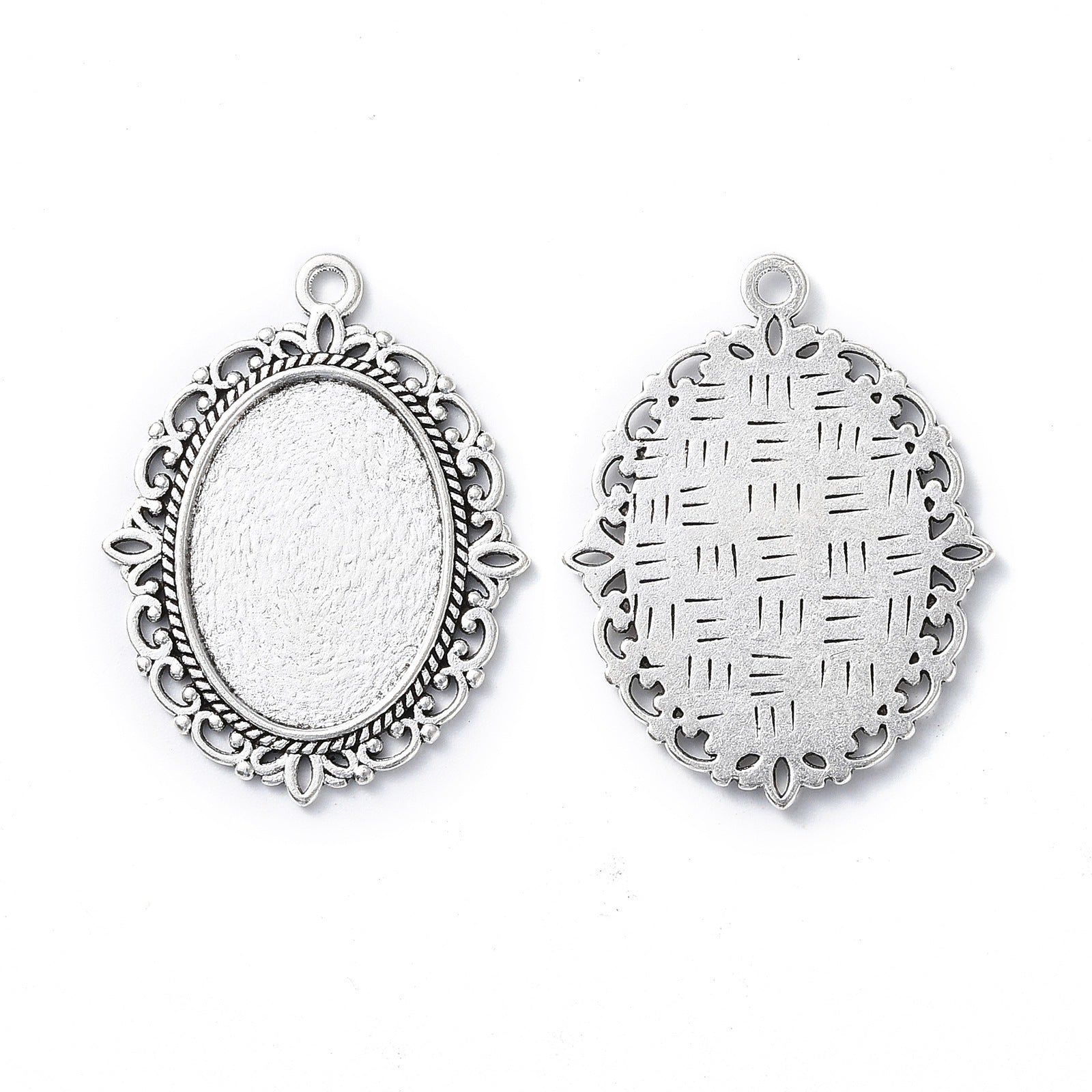 CRASPIRE Tibetan Style Antique Silver Alloy Flat Oval Pendant Cabochon Settings, Cadmium Free & Lead Free, Antique Silver, Tray: 25x18mm, 40x30x2mm, Hole: 2mm, about 213pcs/1000g