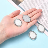 Tibetan Style Antique Silver Alloy Flat Oval Pendant Cabochon Settings, Cadmium Free & Lead Free, Antique Silver