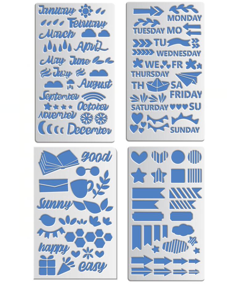 Colour: Word and Geometric (4pc/Set) Metal Journal Stencil Template for Painting, Wood Burning