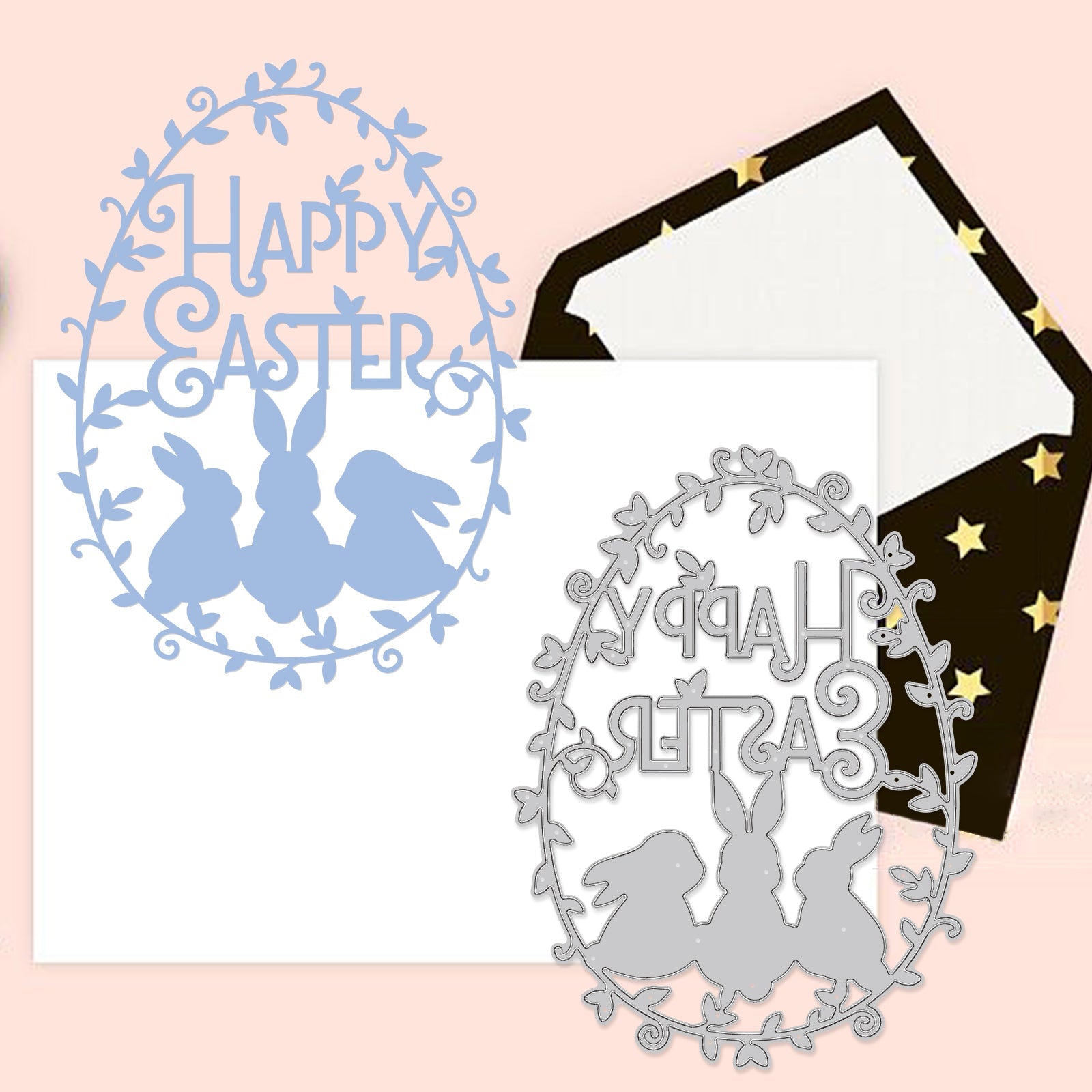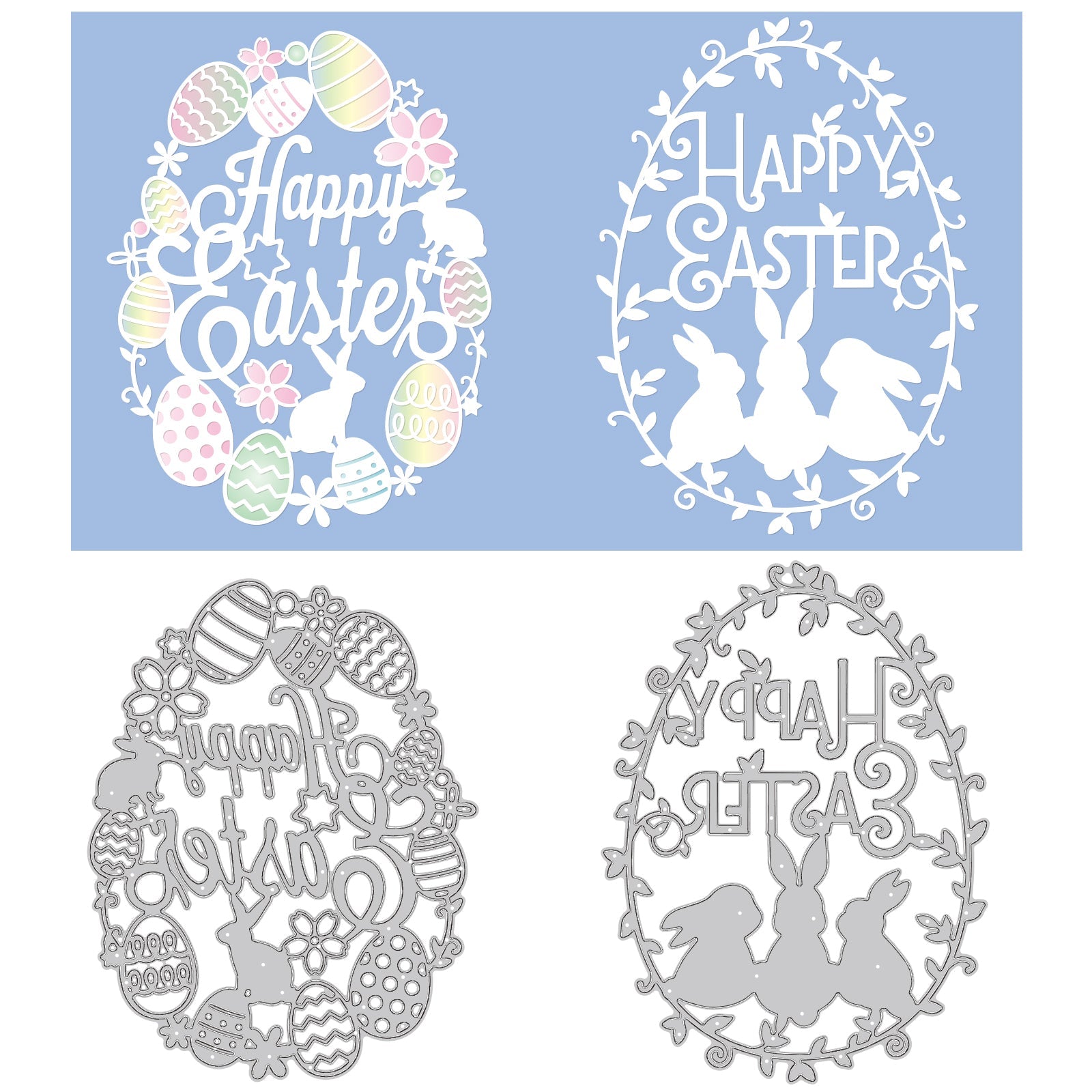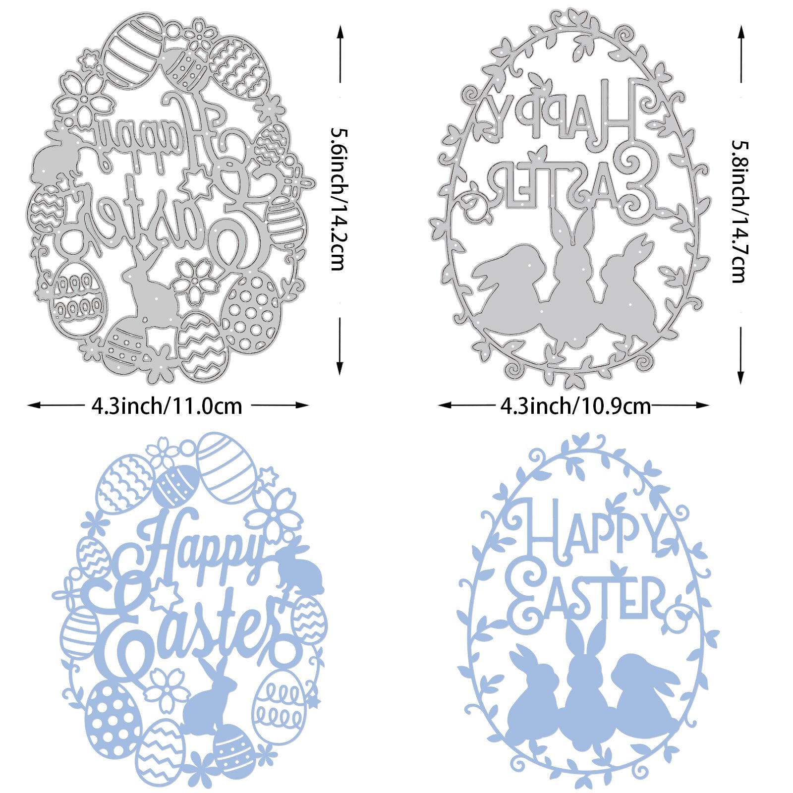 CRASPIRE 2Pcs 2 Styles Happy Easter Carbon Steel Cutting Dies Stencils, for DIY Scrapbooking, Photo Album, Decorative Embossing Paper Card, Stainless Steel Color, Eastar Egg & Rabbit, Easter Theme Pattern, 14.2~14.7x10.9~11x0.08cm, 1pc/style