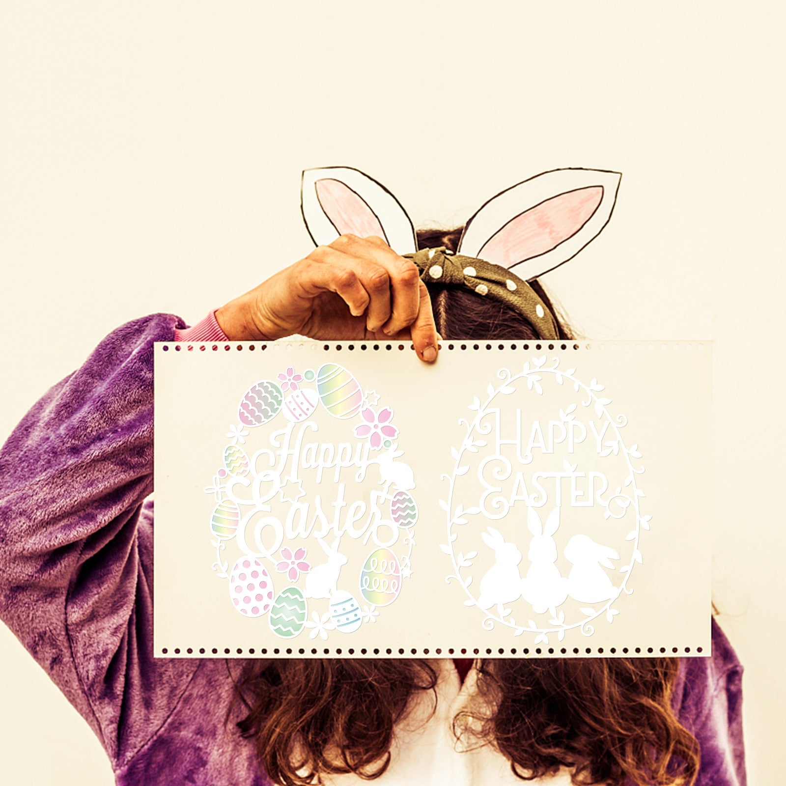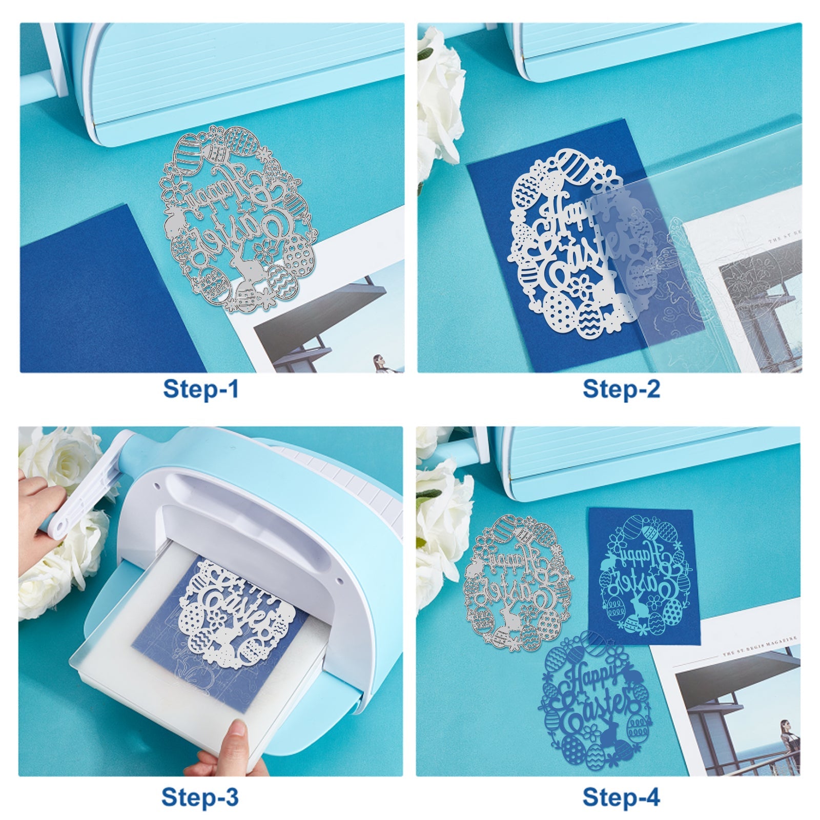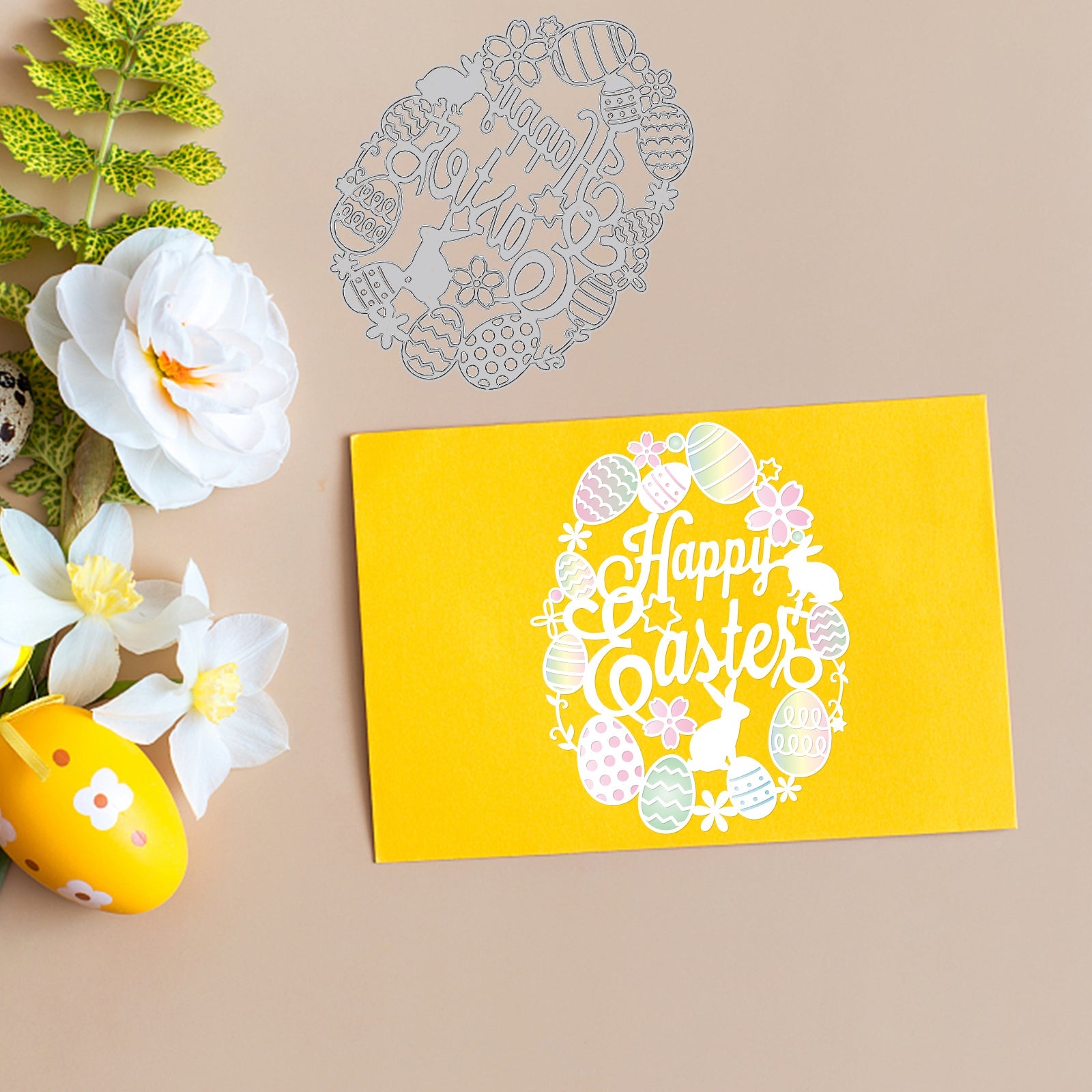 CRASPIRE 2Pcs 2 Styles Happy Easter Carbon Steel Cutting Dies Stencils, for DIY Scrapbooking, Photo Album, Decorative Embossing Paper Card, Stainless Steel Color, Eastar Egg & Rabbit, Easter Theme Pattern, 14.2~14.7x10.9~11x0.08cm, 1pc/style