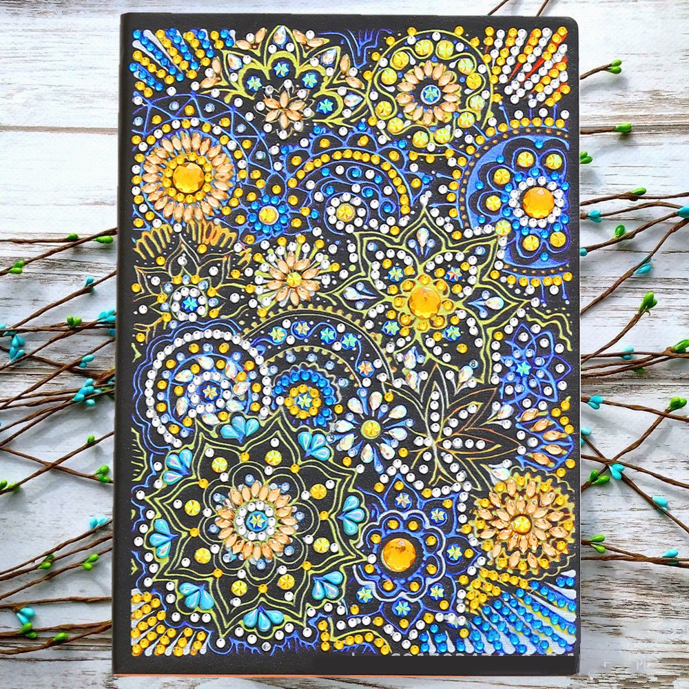 DIY Diamond Painting Notebook Kits, including PU Leather Book, Resin Rhinestones, Diamond Sticky Pen, Tray Plate and Glue Clay, Flower Pattern