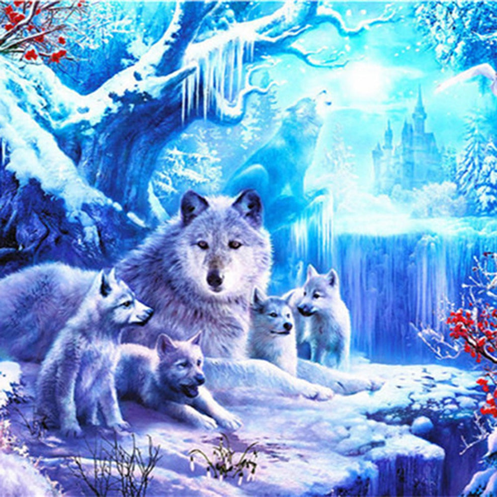 DIY Wolf & Scenery Diamond Painting Kits, including Resin Rhinestones, Diamond Sticky Pen, Tray Plate and Glue Clay, Colorful