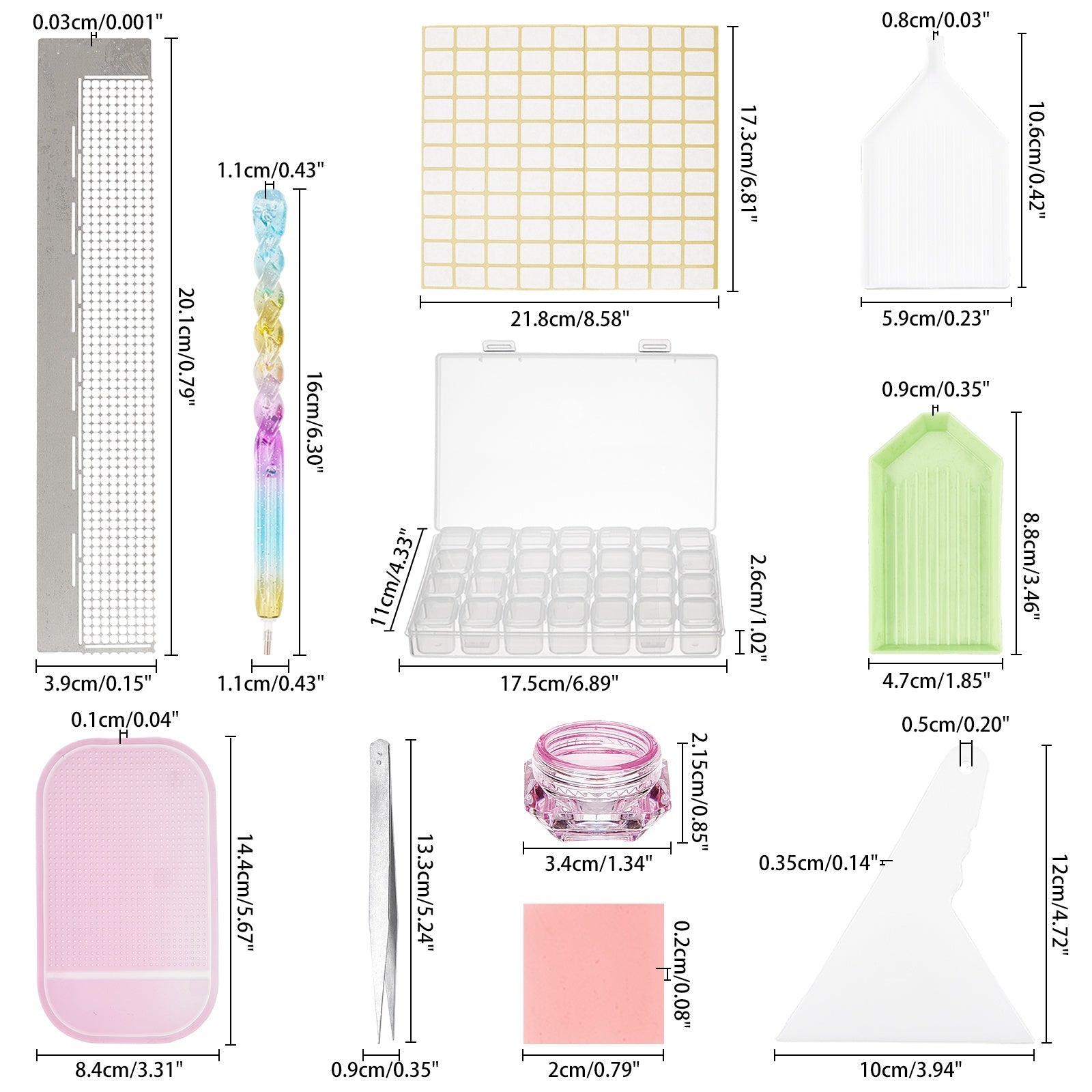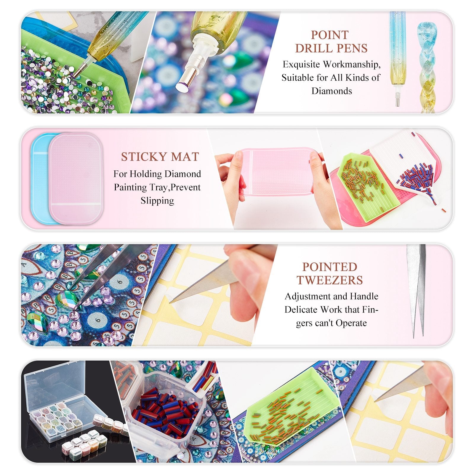 DIY Diamond Picture Kit, with Stainless Iron Tweezers, Label Paster, DIY Rhinestones Picker Tools, Tray Plate, Plastic Cosmetics Jar & Silicone Pad, Mixed Color