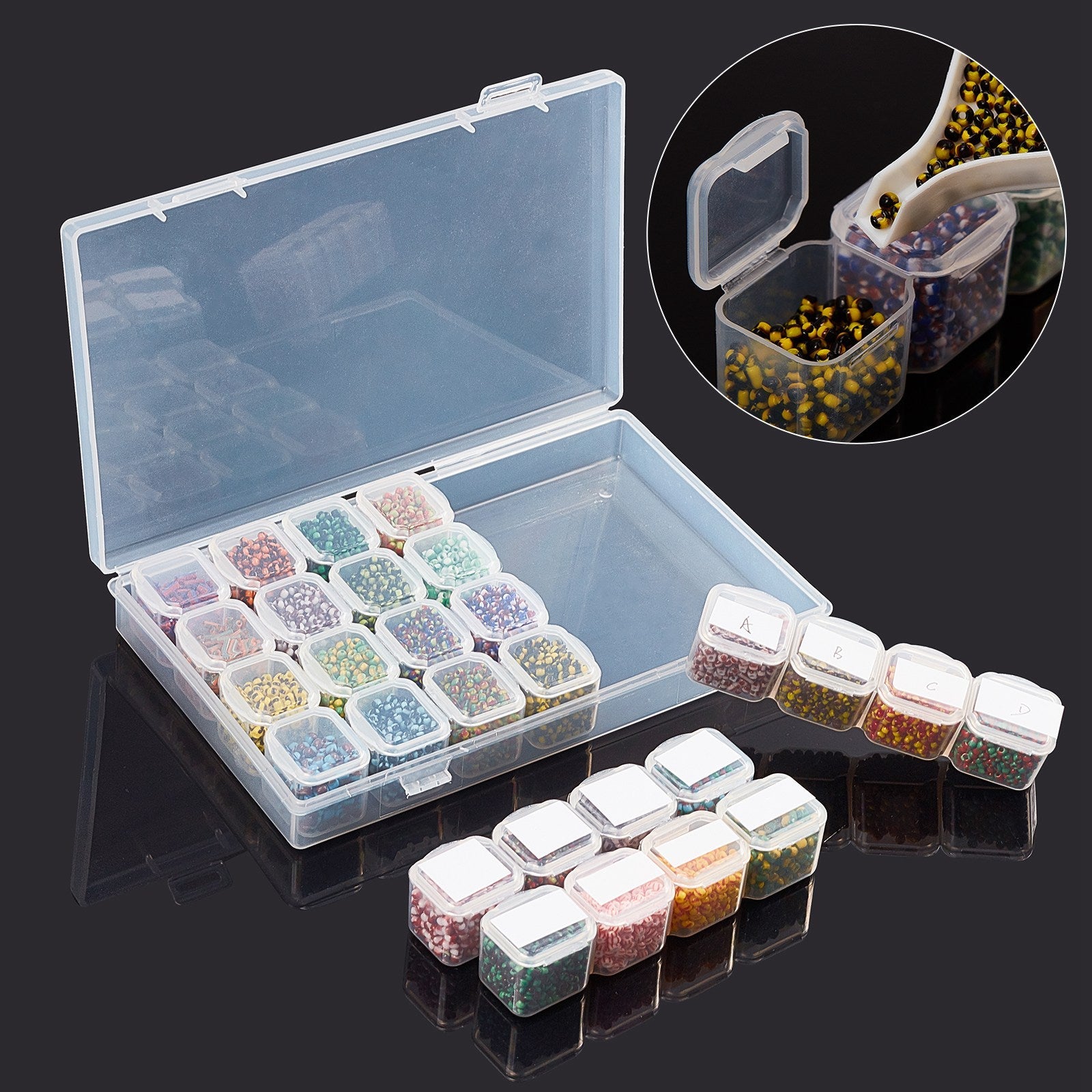Containers: 17.5x11x2.6cm; compartments: 2.4x2.5x2.3cm; 28 compartments/box, 1set;