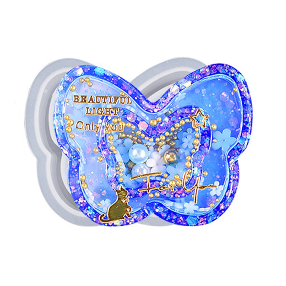 DIY Double Butterfly Shaped Food-grade Silicone Molds, Quicksand Molds, Resin Casting Molds, For UV Resin, Epoxy Resin Craft Making, White, 47x56x13mm, Inner Diameter: 38x49mm