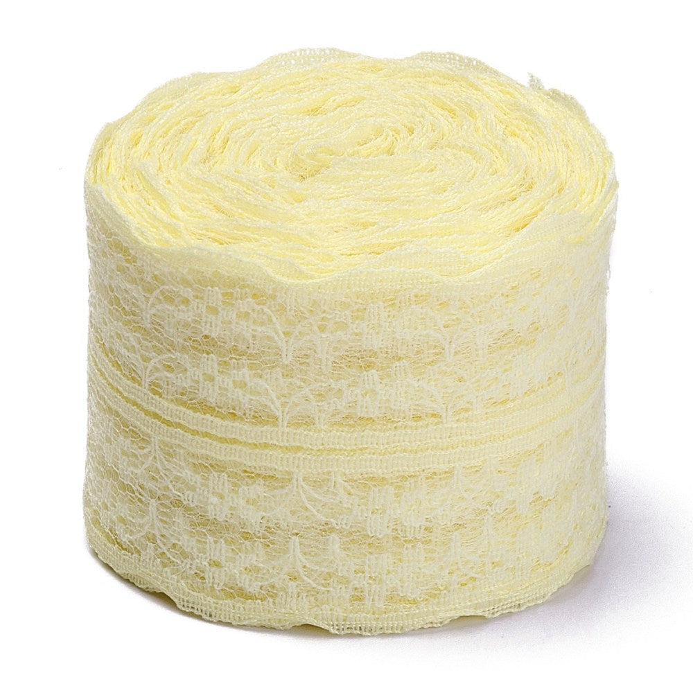 5 Roll Polyester Lace Trim, Lace Ribbon For Sewing Decoration, Light Khaki, 45mm, about 1- 3/4 inch(45mm) wide, about 10.93 yards (10m)/roll