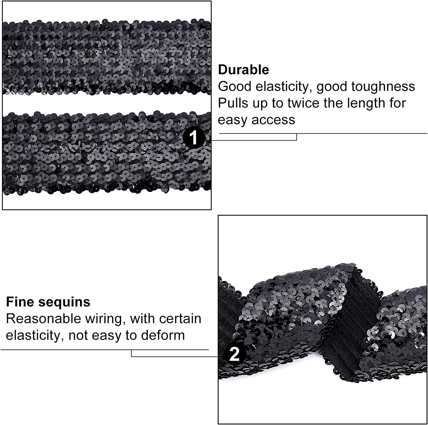 - Elastic Sequin Design: Each of these sequins is dazzling and looks more dazzling under the light, and it is tightly sewn on the elastic woven belt and not easy to fall off; the elastic design also makes it flexible and easy to use, saving your time and effort.