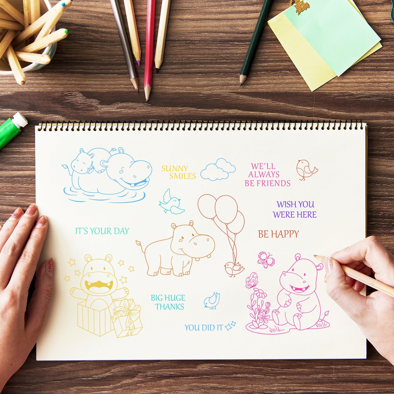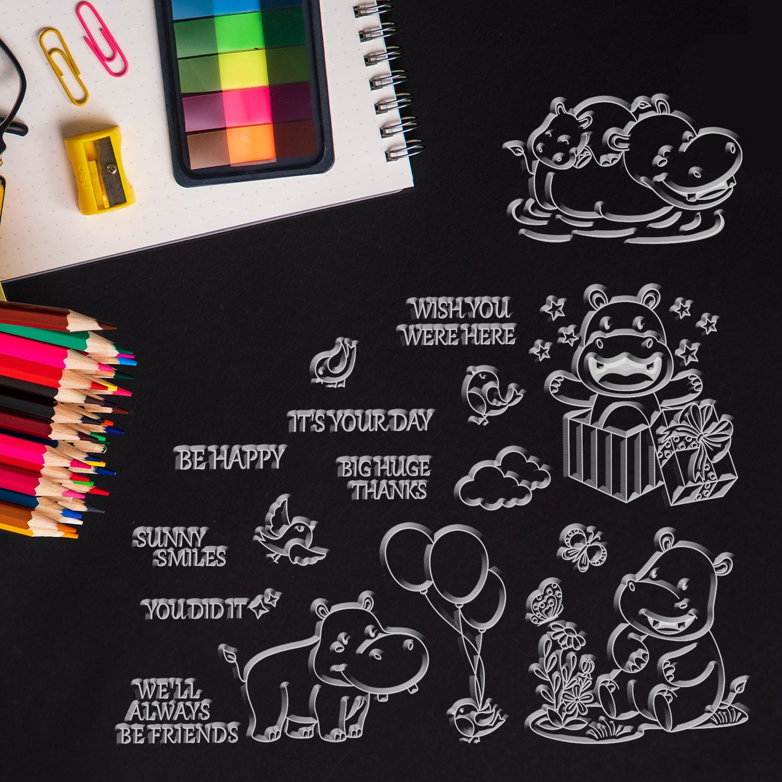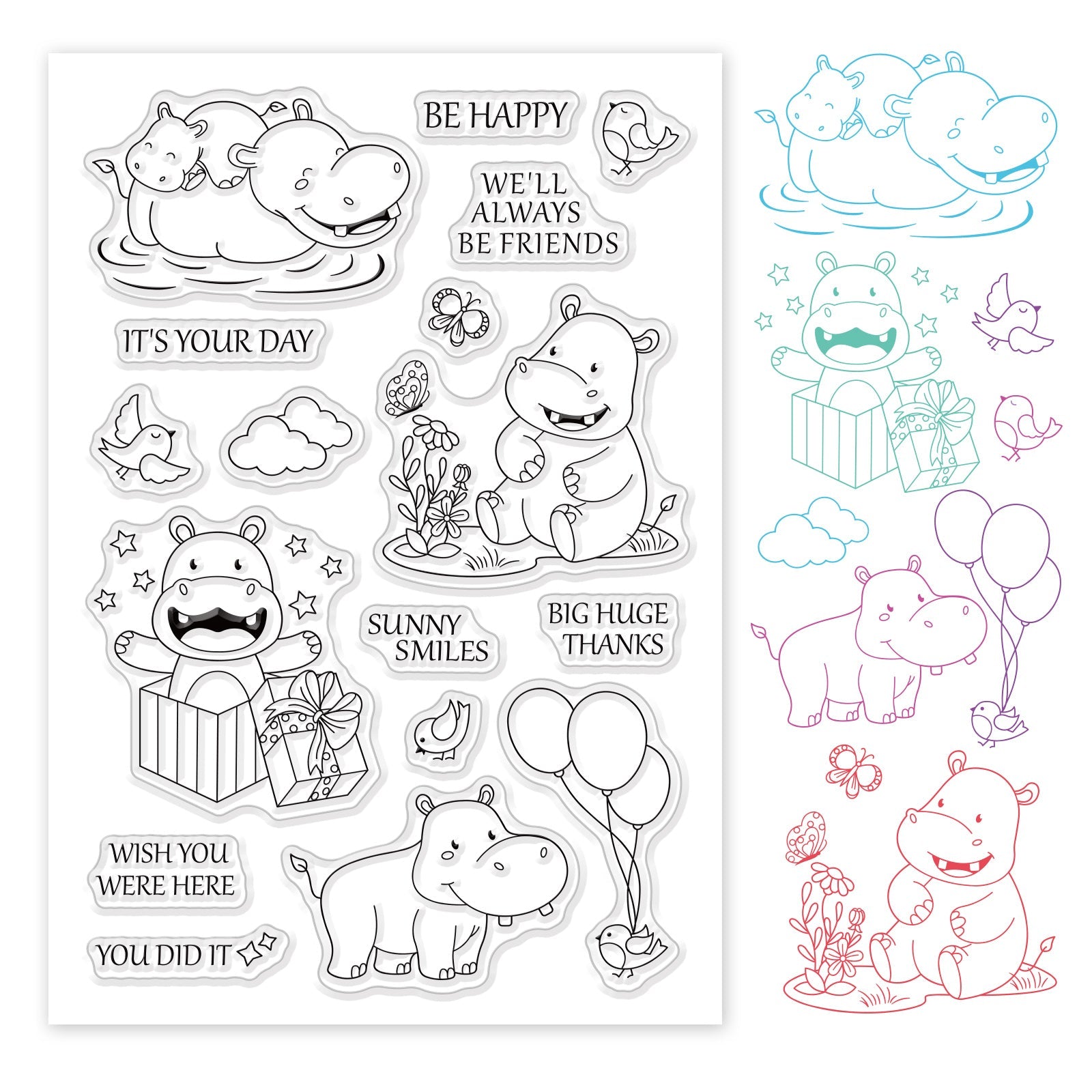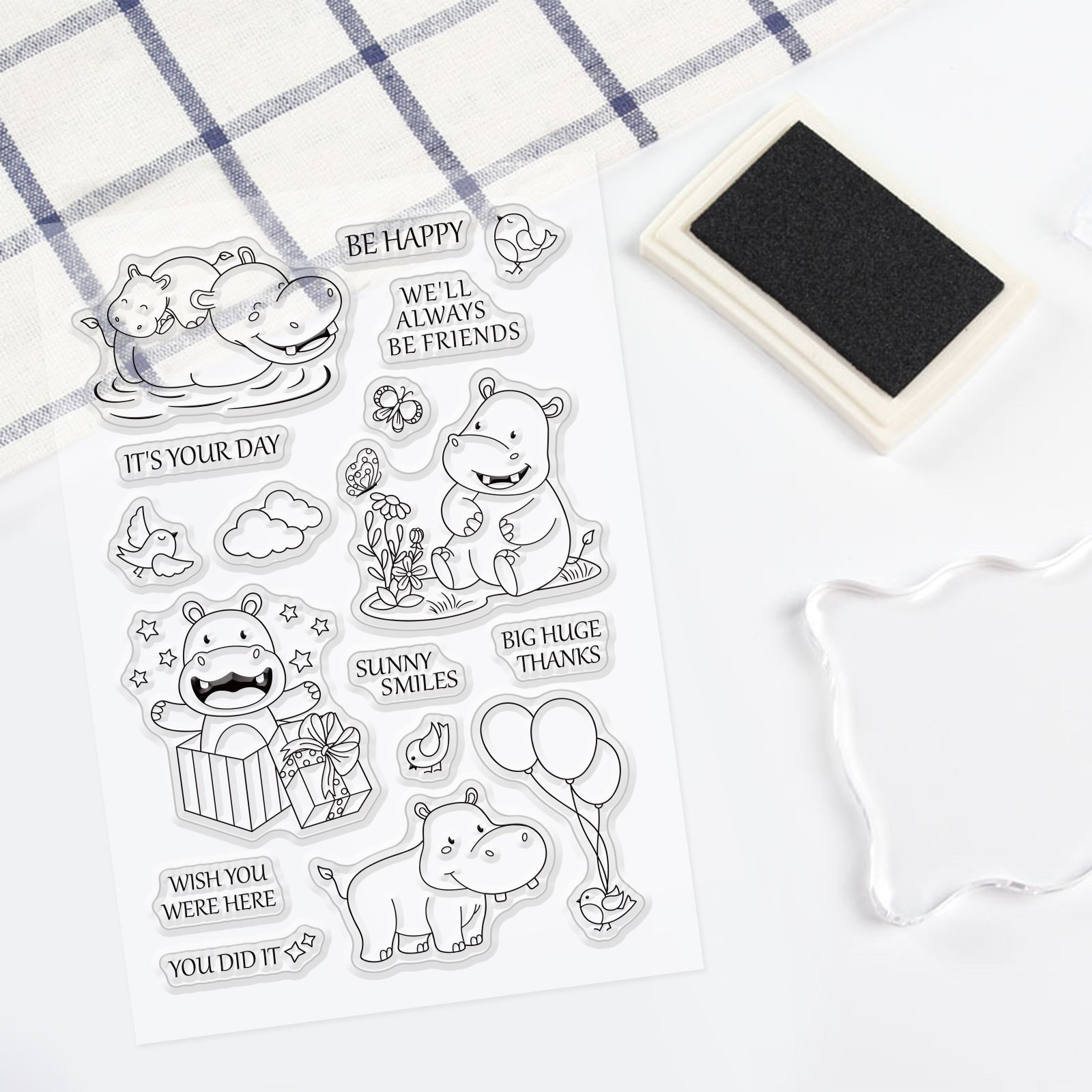 Craspire Happy Hippo, Bird, Flowers Clear Silicone Stamp Seal for Card Making Decoration and DIY Scrapbooking