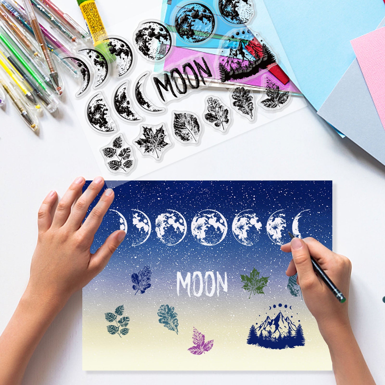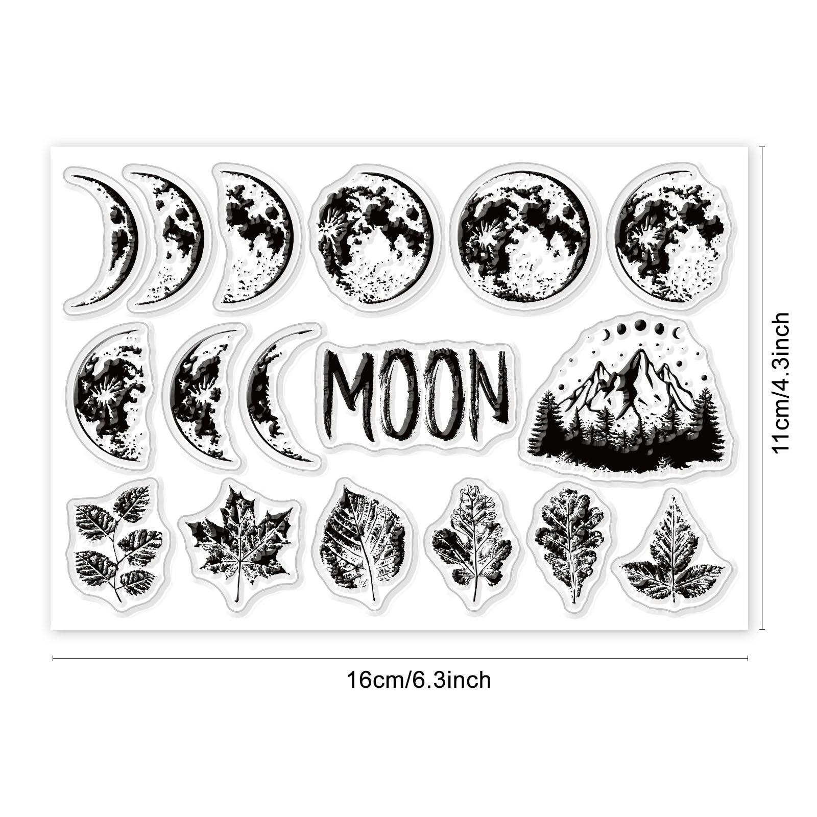 Craspire Moon, Moon Phase, Full Moon, Crescent, Leaves, Autumn, Mountain Clear Silicone Stamp Seal for Card Making Decoration and DIY Scrapbooking