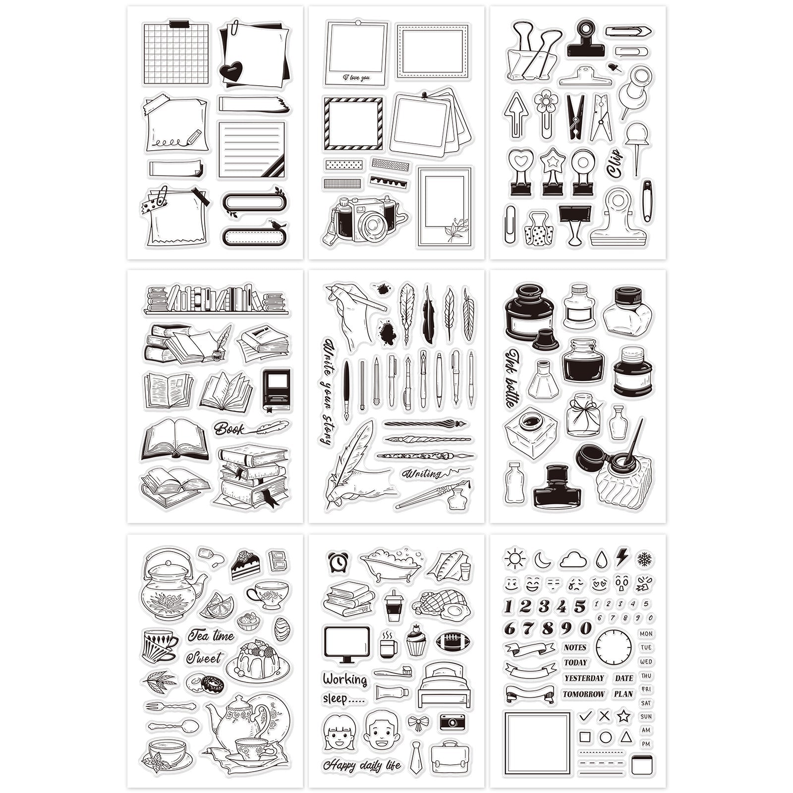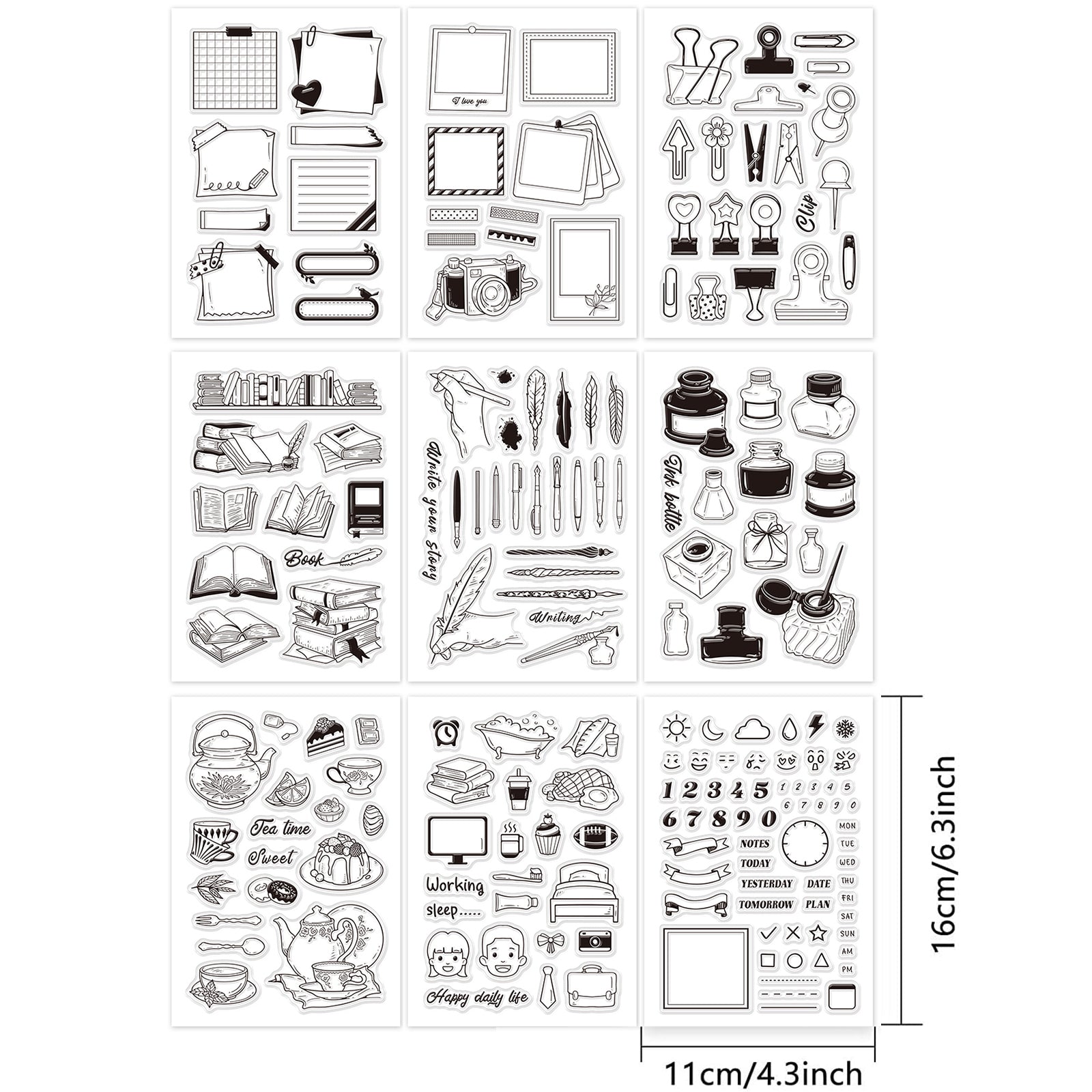 Craspire Acrylic Stamps, for DIY Scrapbooking, Photo Album Decorative, Cards Making, Stamp Sheets, Mixed Patterns, 16x11x0.3cm, 9 patterns, 1pc/pattern, 9pcs/set