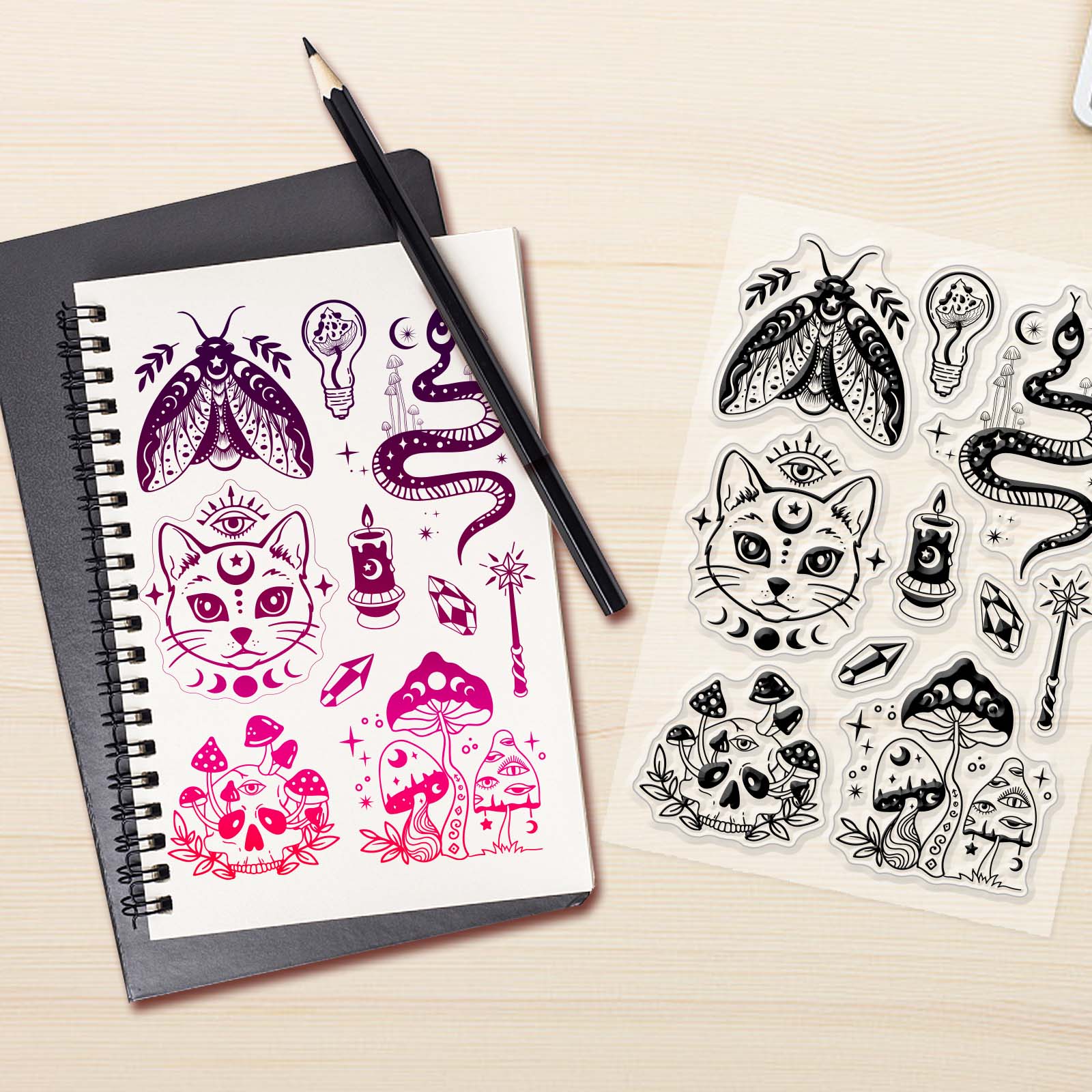 Craspire Custom PVC Plastic Clear Stamps, for DIY Scrapbooking, Photo Album Decorative, Cards Making, Moon Phase Pattern