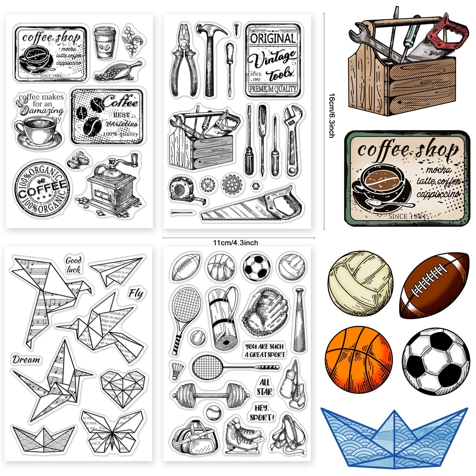 4 Sheets 4 Styles PVC Plastic Stamps, for DIY Scrapbooking, Photo Album Decorative, Cards Making, Stamp Sheets, Relaxed & Relieved