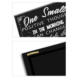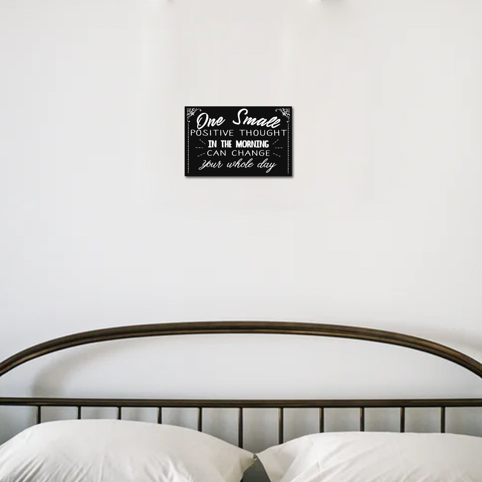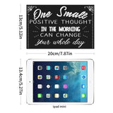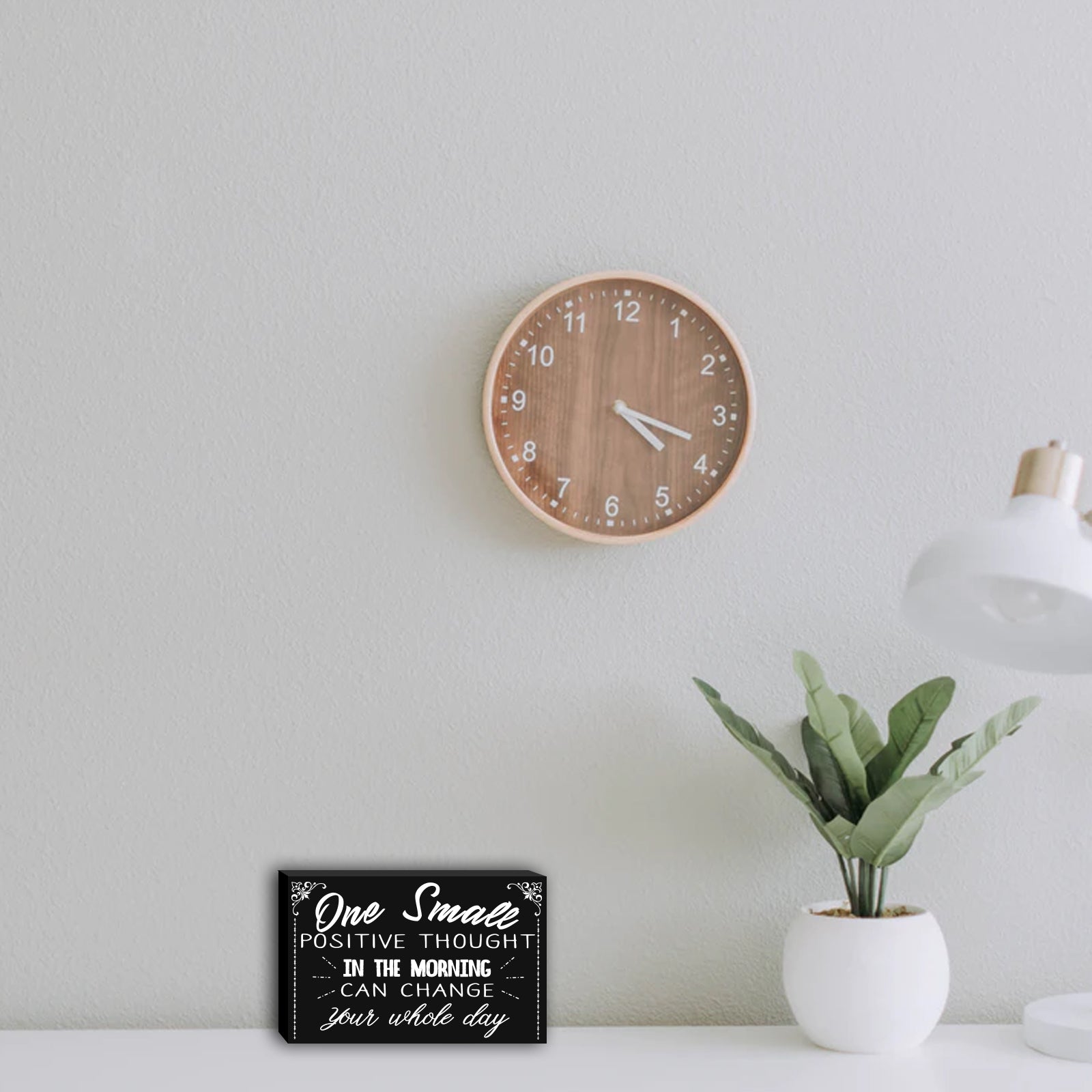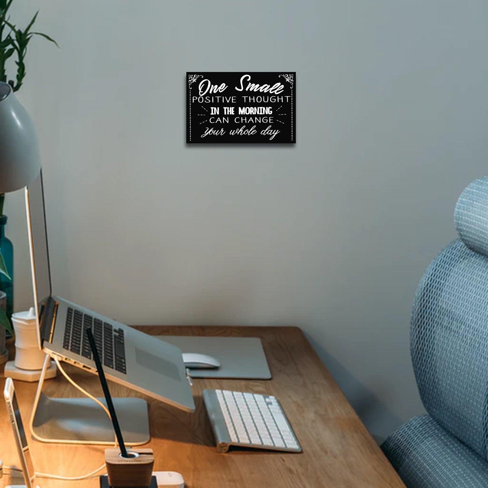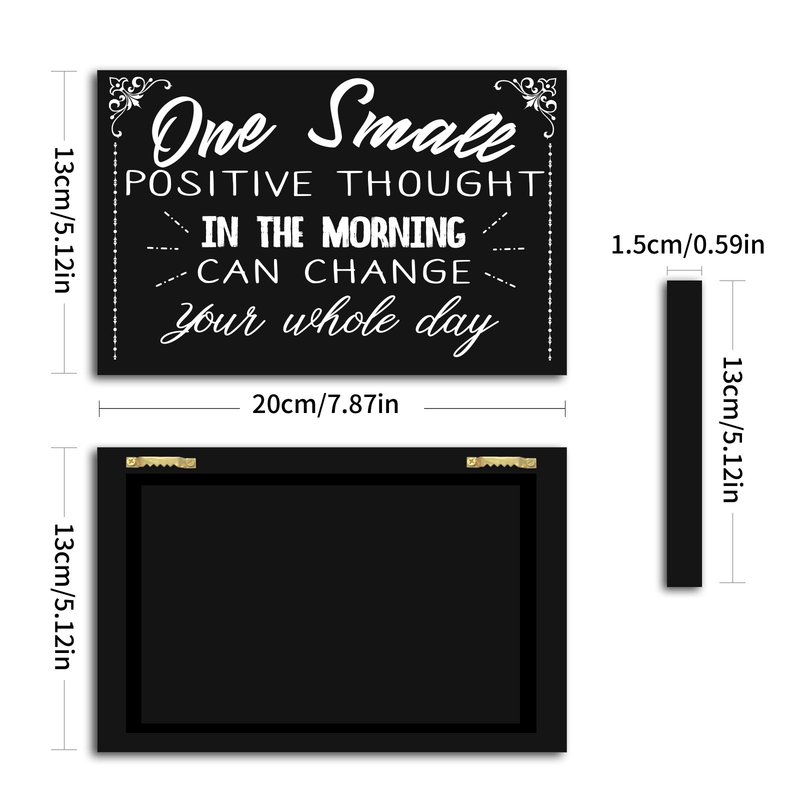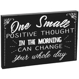 - WALL DECOR SIGNS: One Small Positive Thought In The Morning Can Change Your Whole Day. The desktop decor measures 7.87 x 5.12 x 0.6 inch, appropriate size for people to clearly see these words on the ornament.