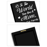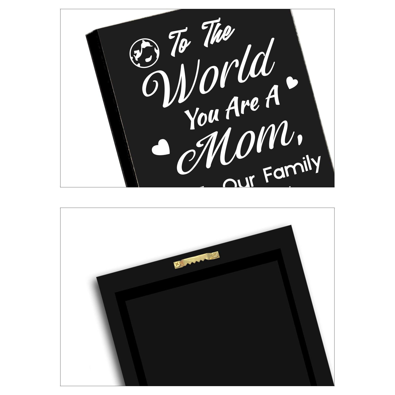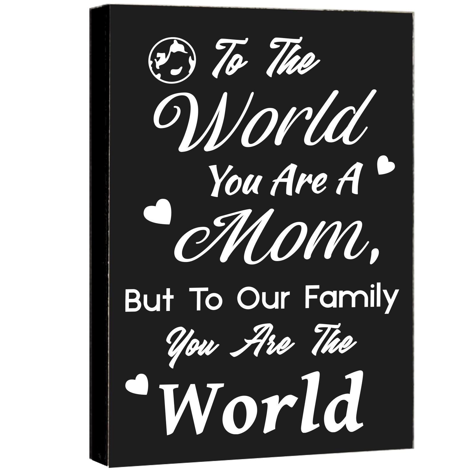 - WALL DECOR SIGNS: to The World You Are A Mom But to Your Family You Are The World. The desktop decor measures 7.87 x 5.12 x 0.6 inch, appropriate size for people to clearly see these words on the ornament.