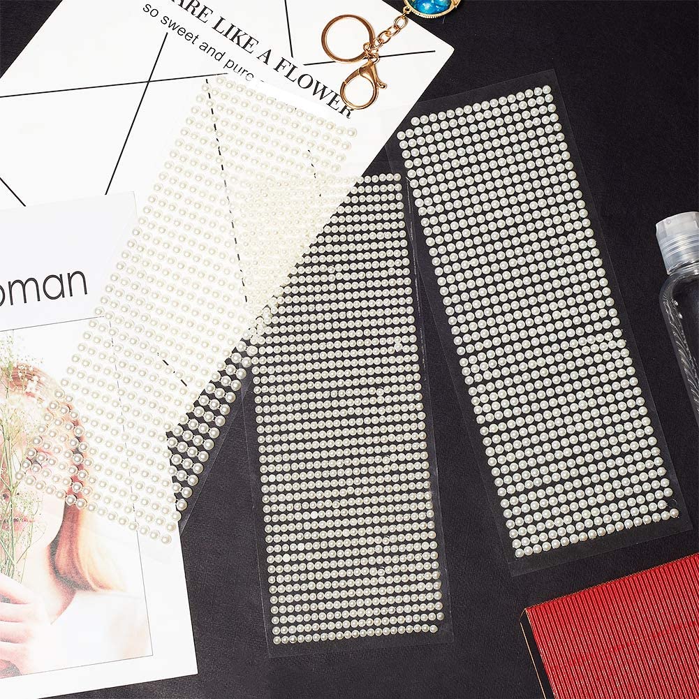 Craspire Self Adhesive Stickers, Imitation Pearl Resin Cabochons Stickers, Half Round, White, 3.5~6x2~2.5mm, 3pcs/set