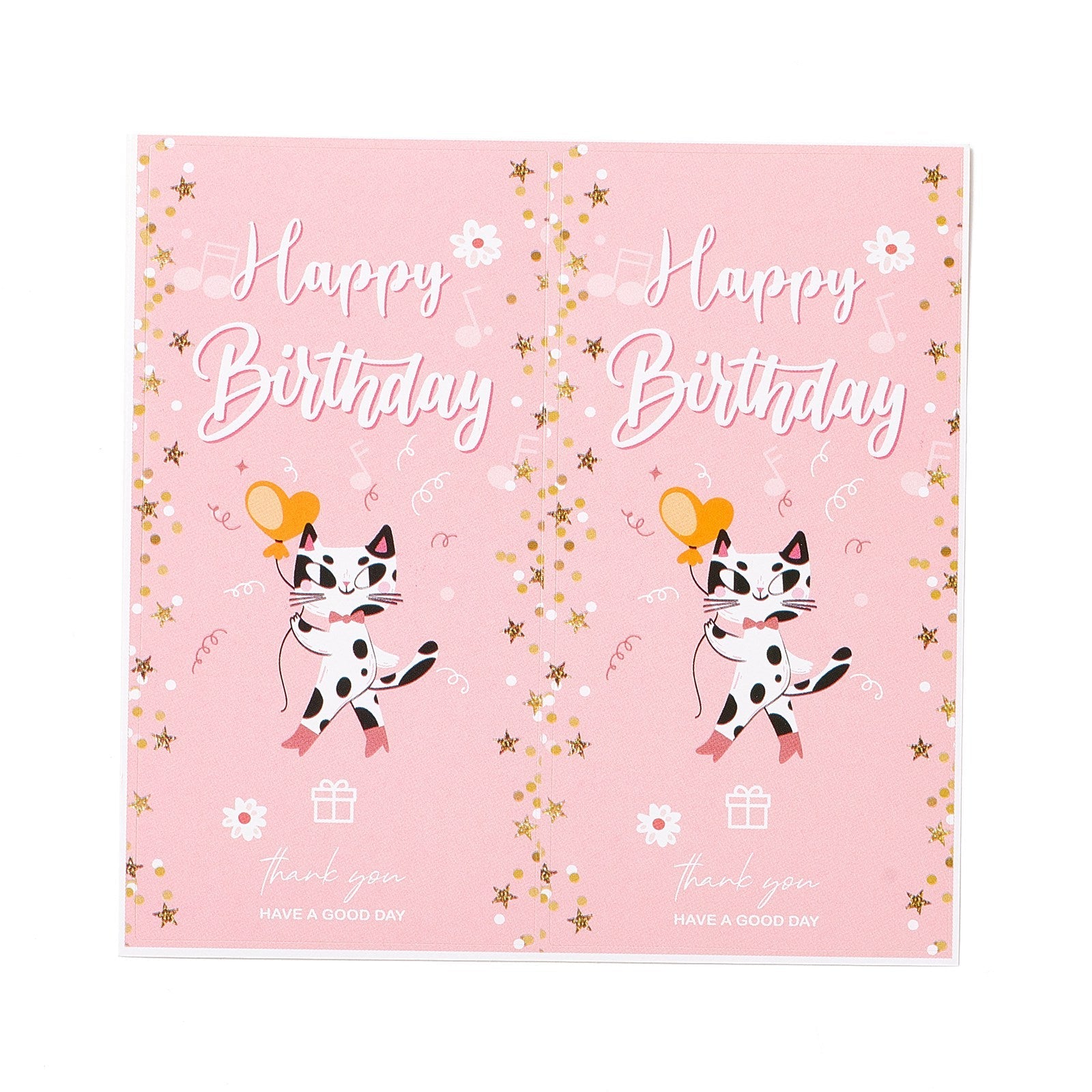 Rectangle Happy Birthday Theme Paper Stickers, Self Adhesive Sticker Labels, for Envelopes, Bubble Mailers and Bags, Cat Pattern