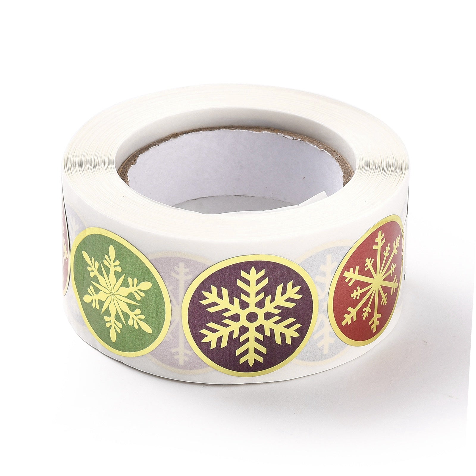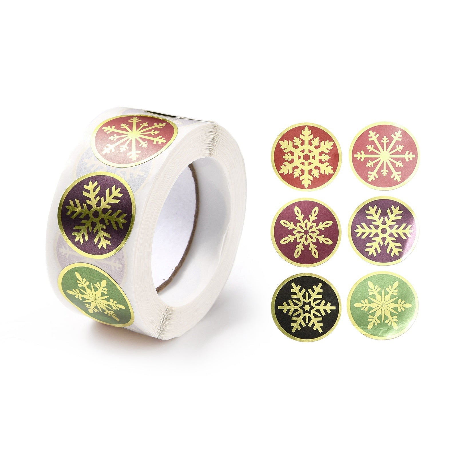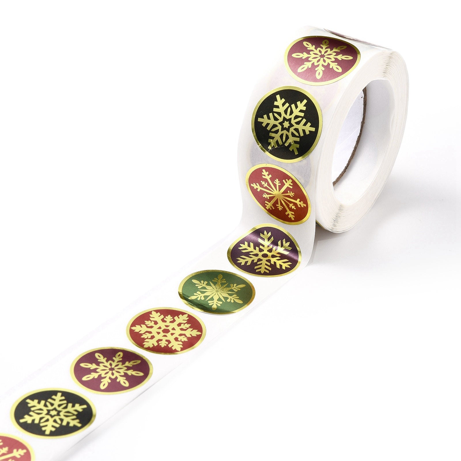 Design: Each round sticker has printed with golden snowflake patterns, suitable as festival stickers on Christmas, and the roll design makes it easy to store, carry and use.