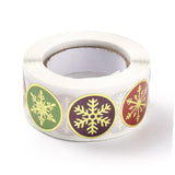 Christmas Themed Flat Round Roll Stickers, Self-Adhesive Paper Gift Tag Stickers, for Party, Decorative Presents, Snowflake Pattern