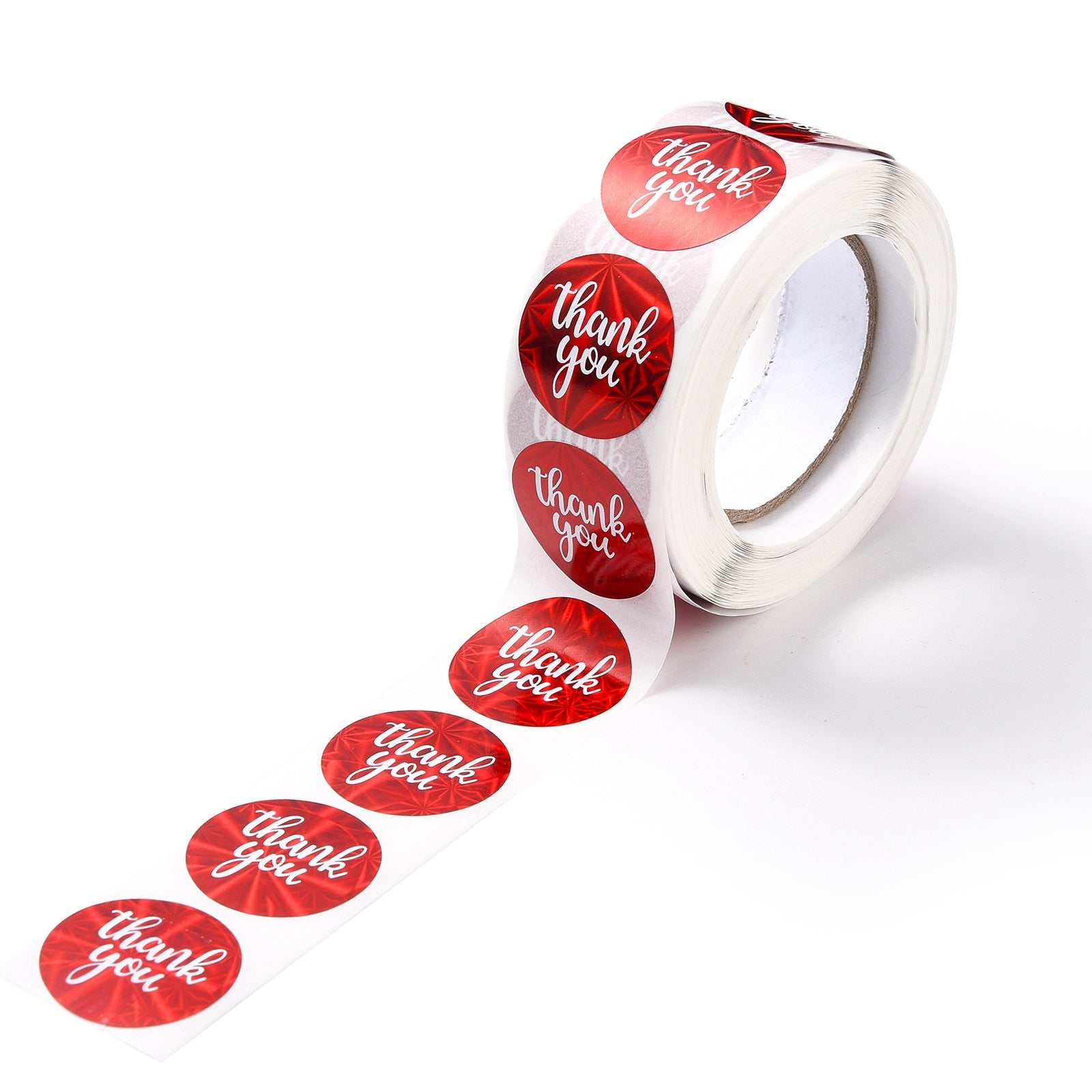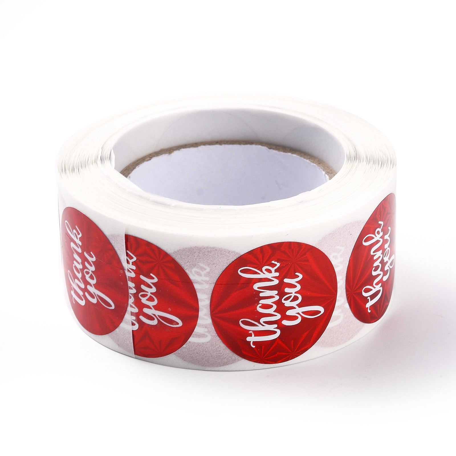 Craspire Thank you Stickers Roll, Self-Adhesive Paper Gift Tag Stickers, for Party, Decorative Presents, Flat Round , Red, 25x0.1mm, about 500pcs/roll, 5rolls/set
