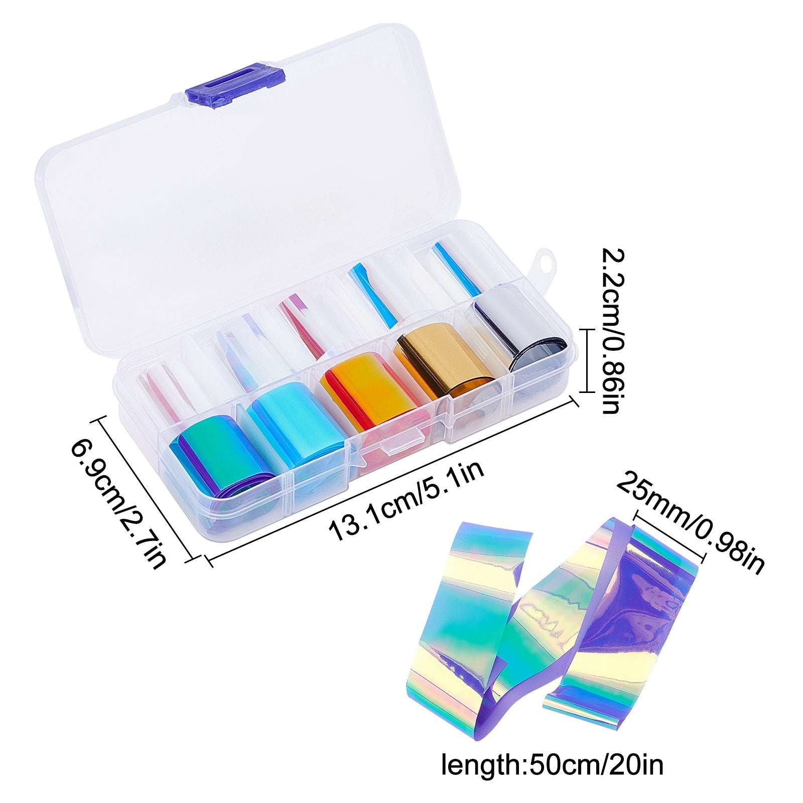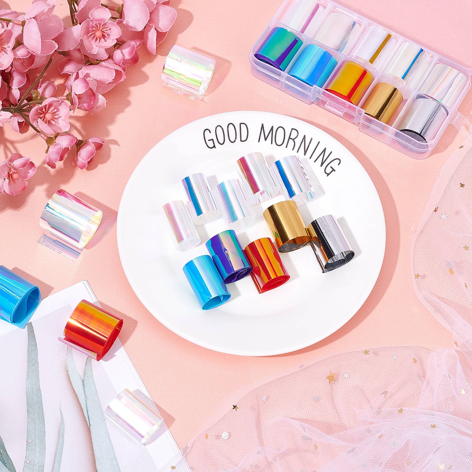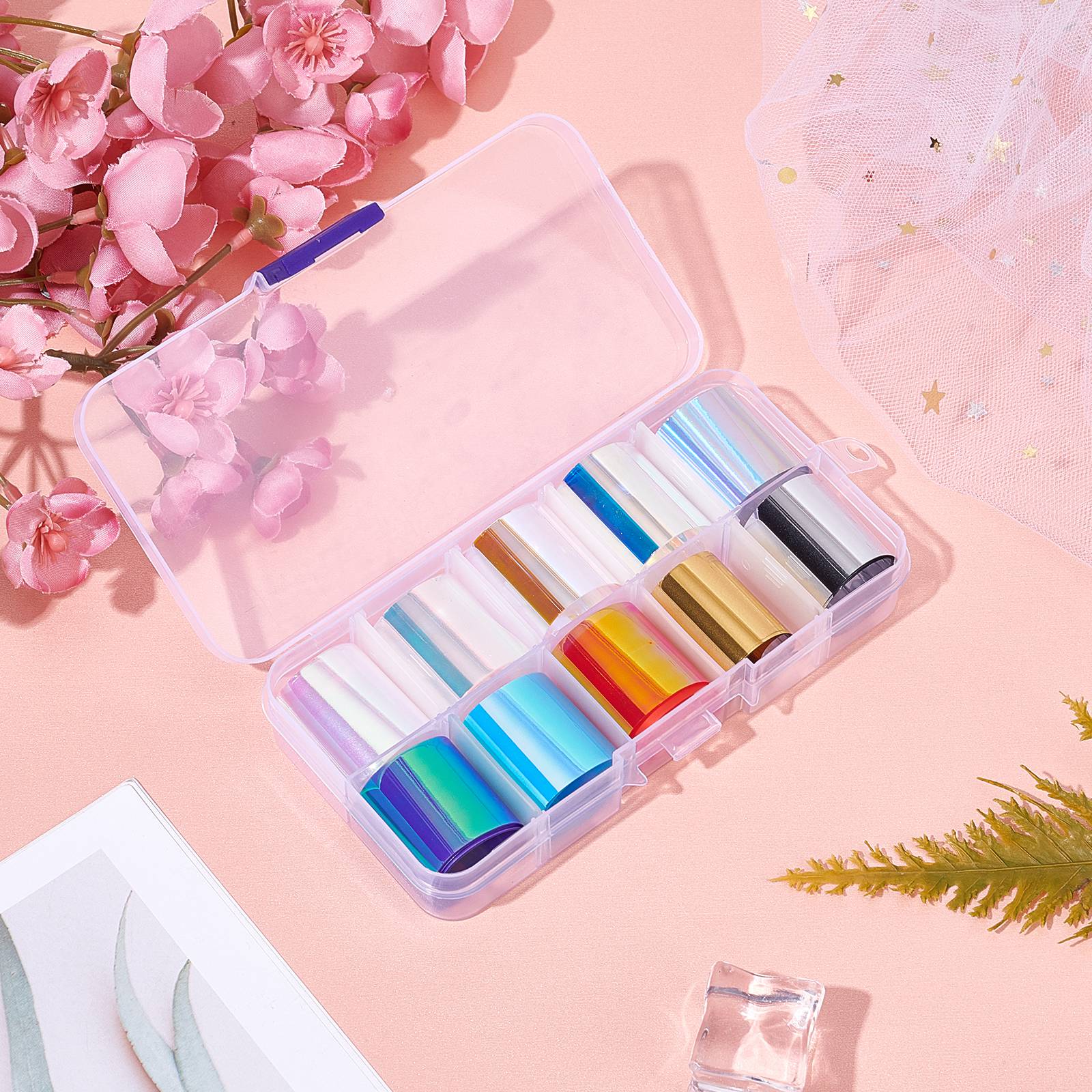 Craspire 10 Color PET Paper Nail Care Decoration, Nail Art Decoration Accessories for Women, Mixed Color, 500x26mm, 10pcs/box