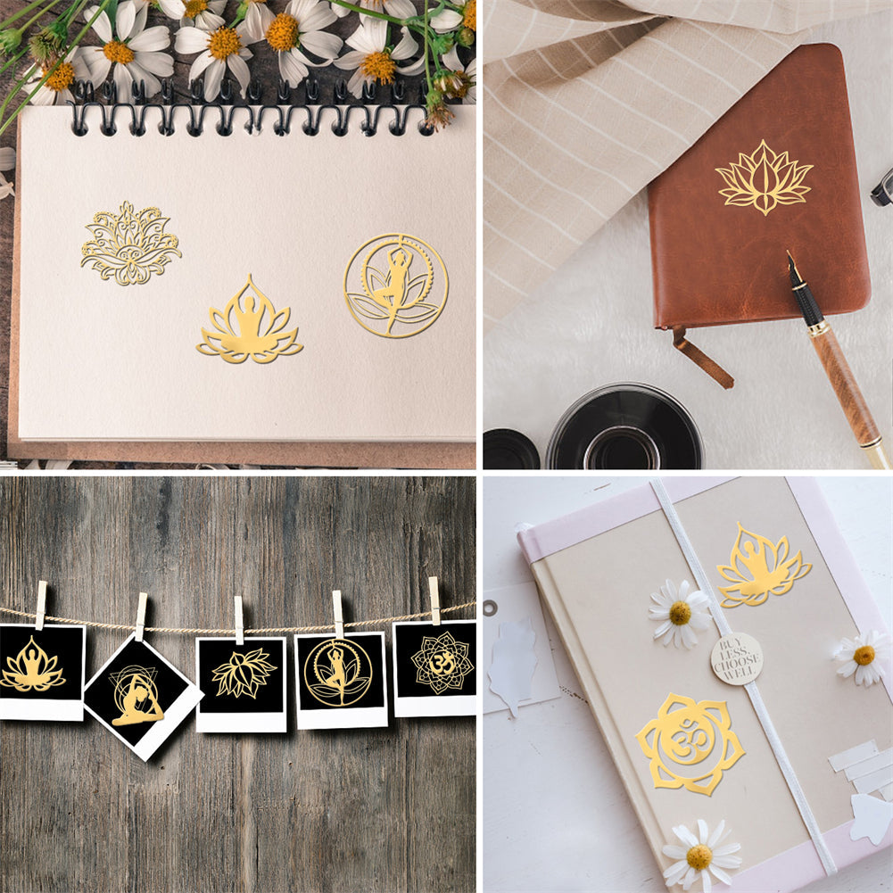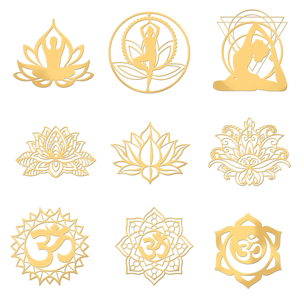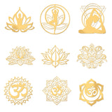 9Pcs 9 Styles Chakra Nickel Self-adhesive Picture Stickers, Golden, Mixed Patterns