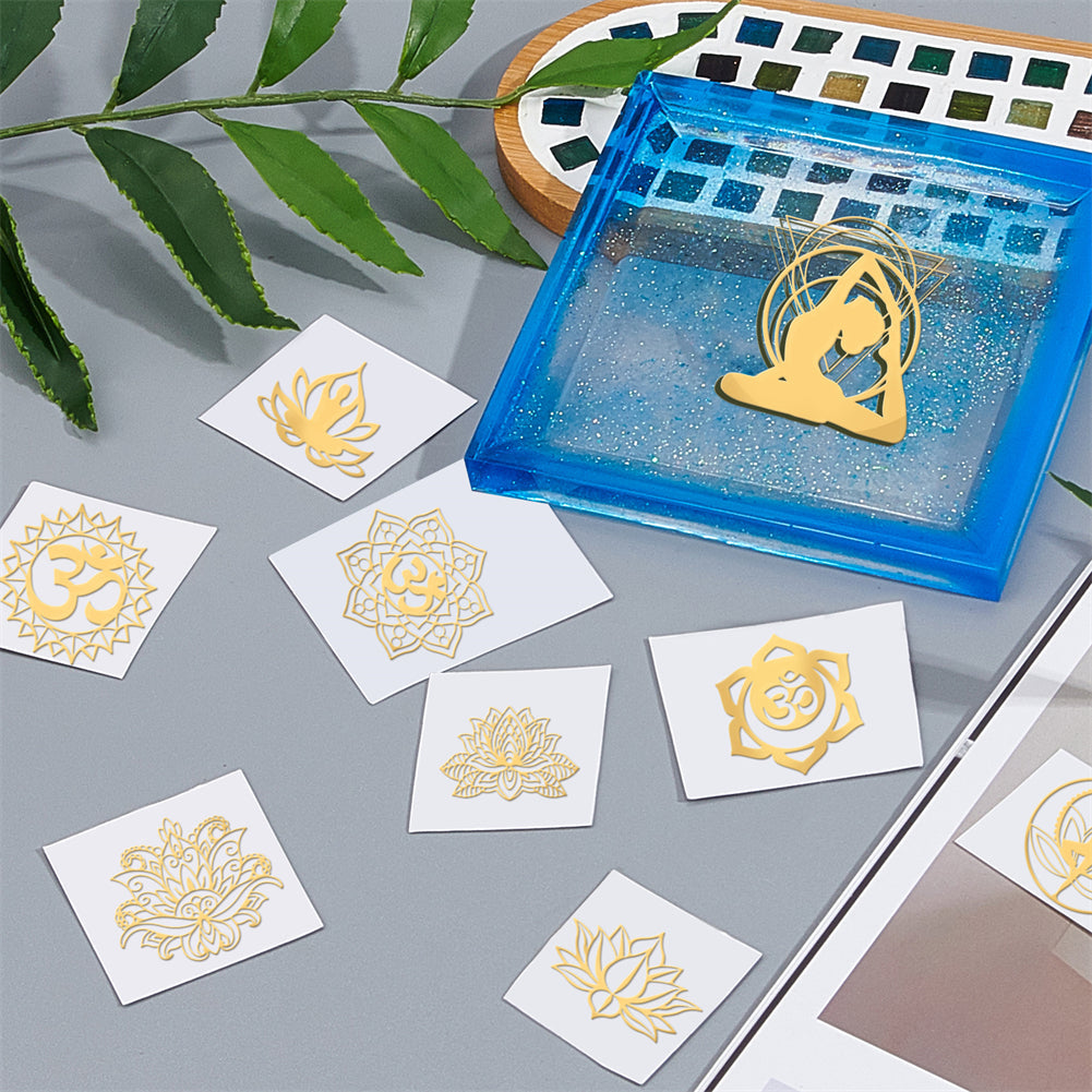 Craspire 9Pcs 9 Styles Chakra Nickel Self-adhesive Picture Stickers, Golden, Mixed Patterns, 40x40mm, 1pc/style