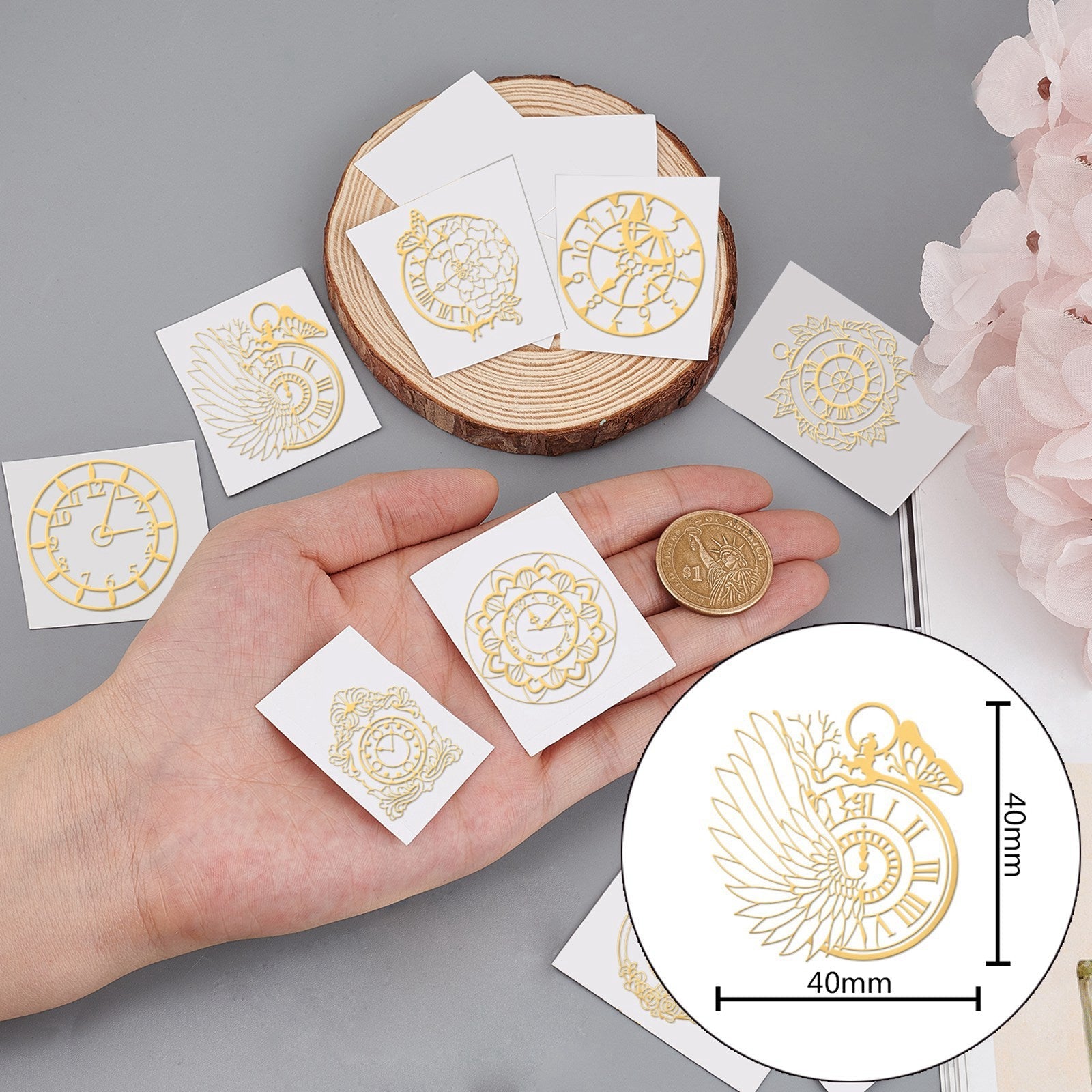 9Pcs 9 Styles Custom Carbon Steel Self-adhesive Picture Stickers, Clock Pattern