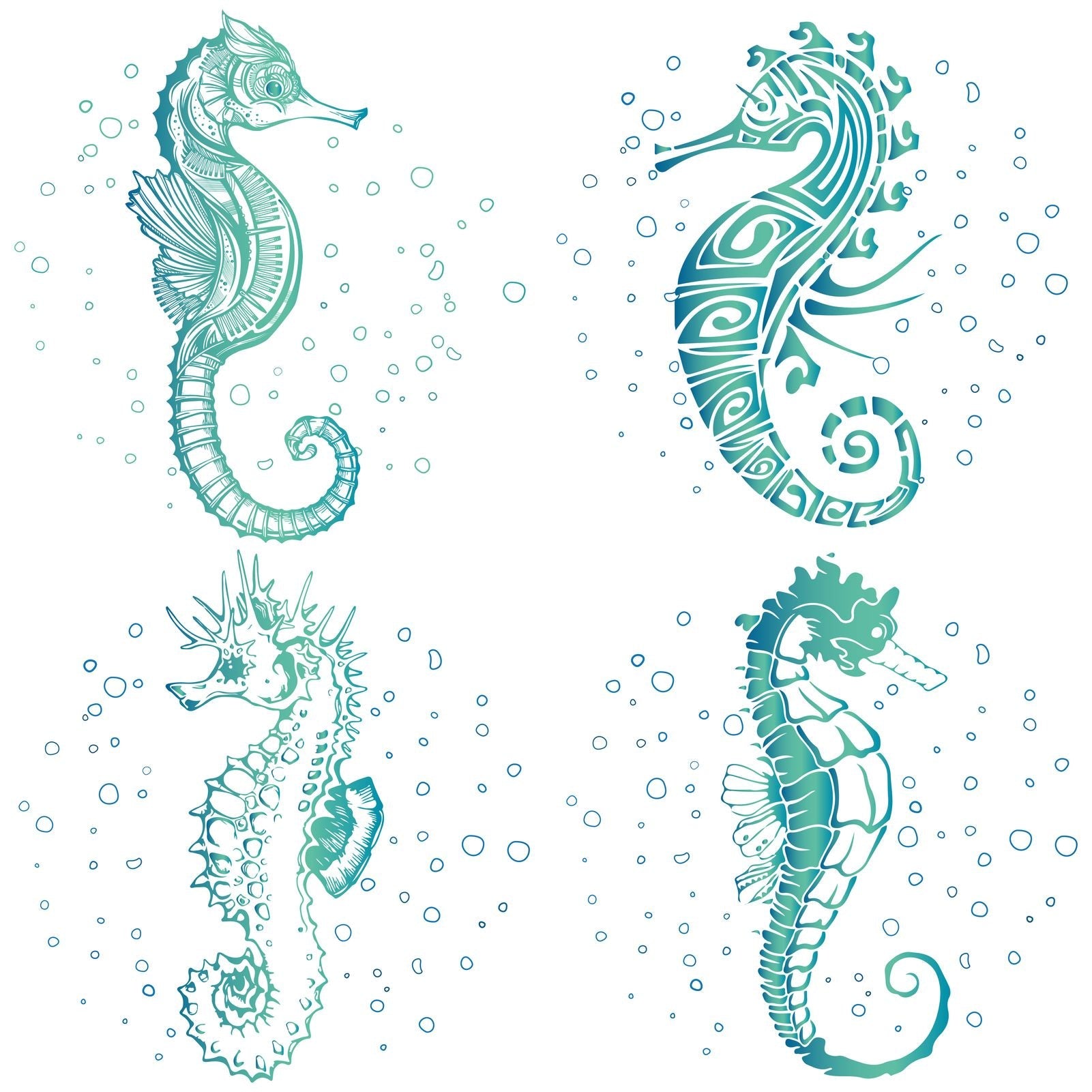 Craspire PVC Wall Sticker, Flat Round Shape, for Window or Stairway Decoration, Sea Horse Pattern, 18x0.03cm, 4 style, 1pc/style, 4pcs/set