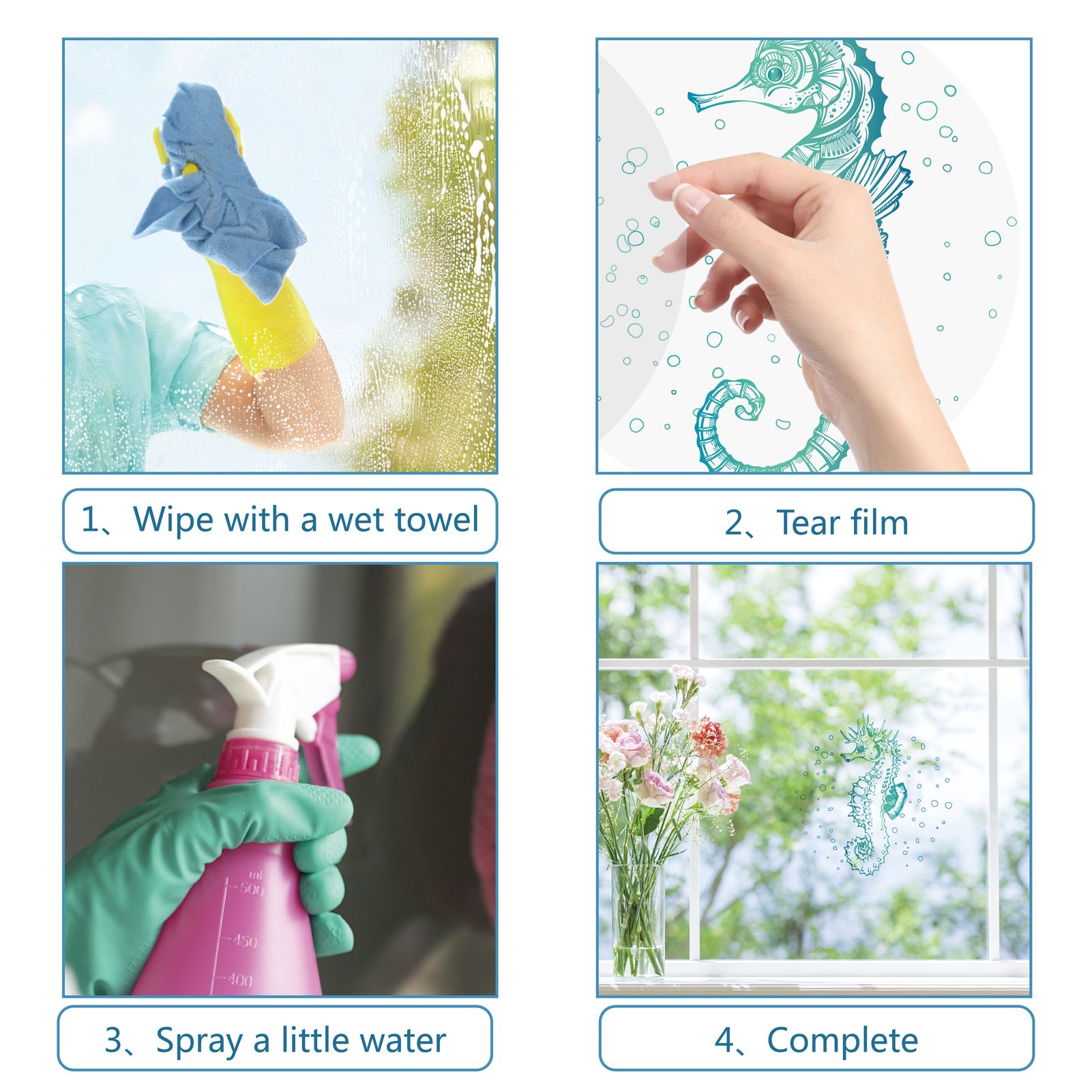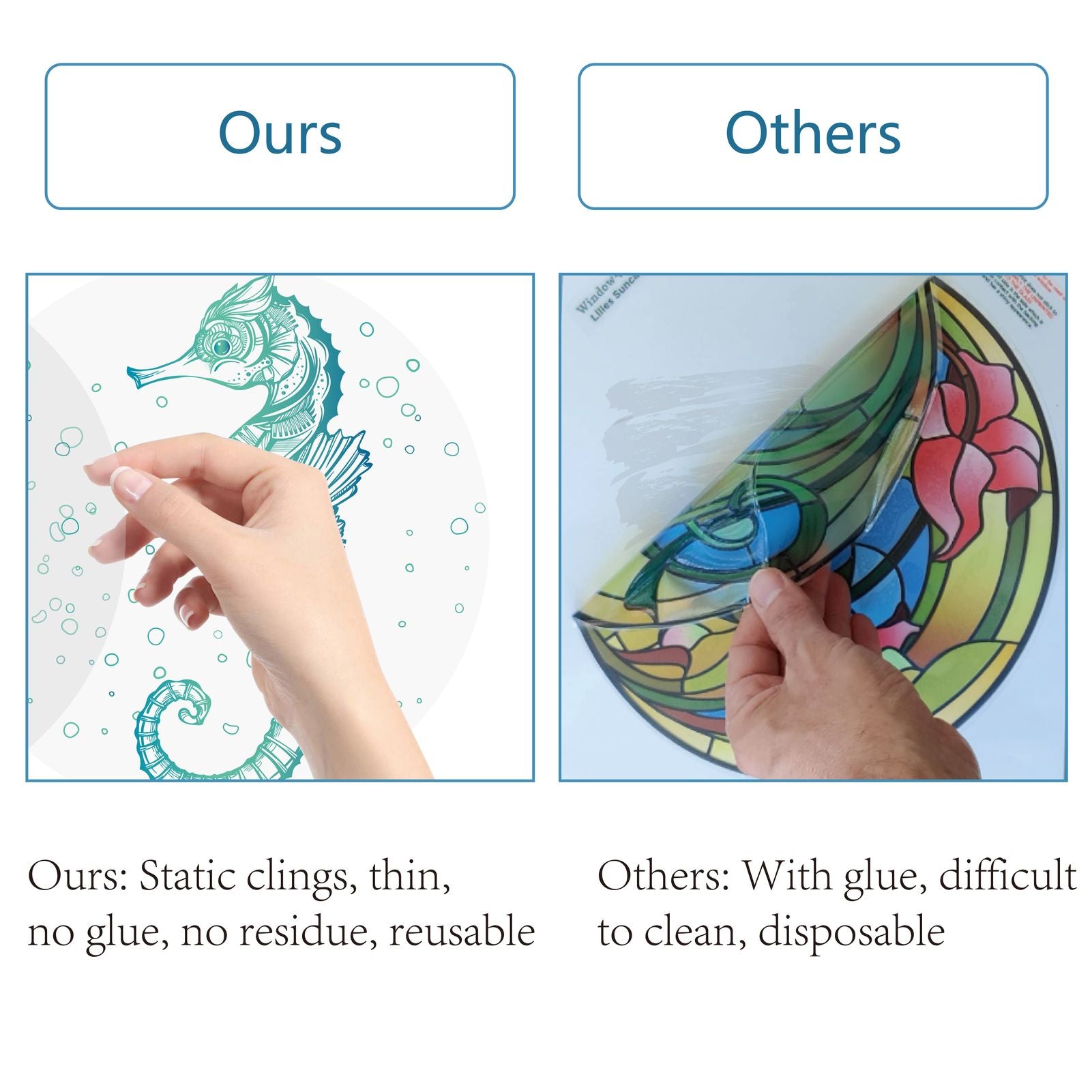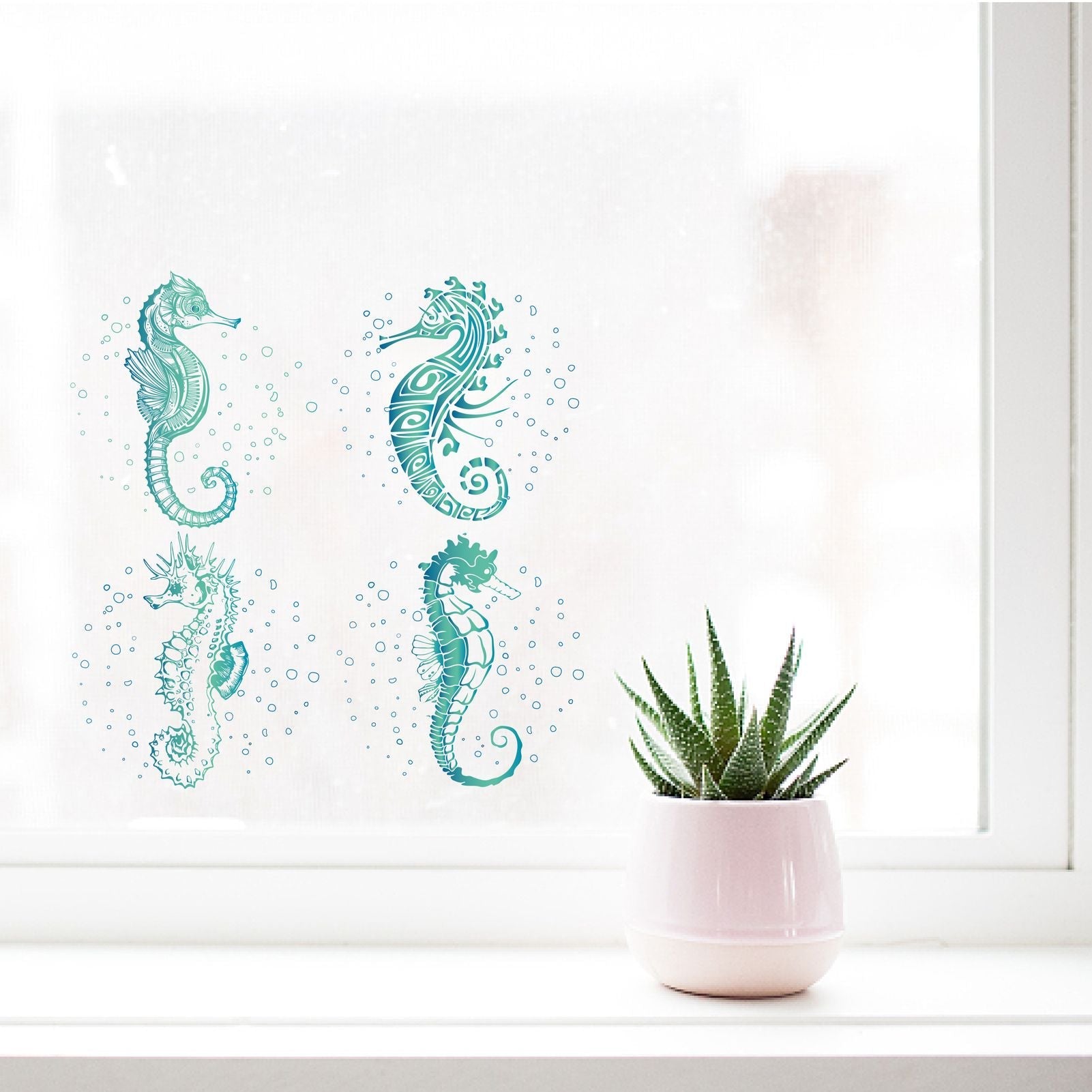 PVC Wall Sticker, Flat Round Shape, for Window or Stairway Decoration, Sea Horse Pattern