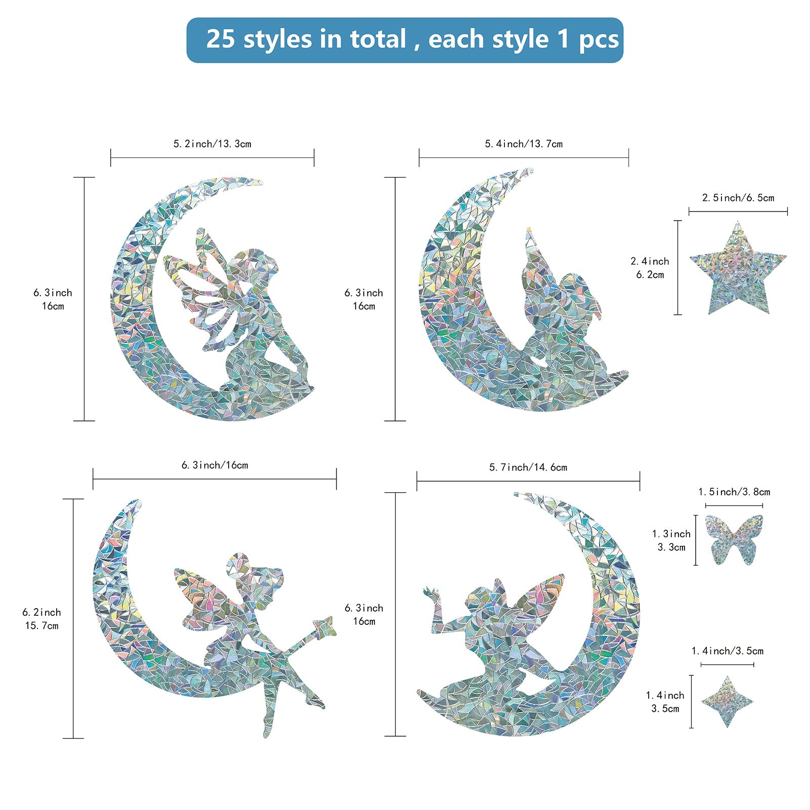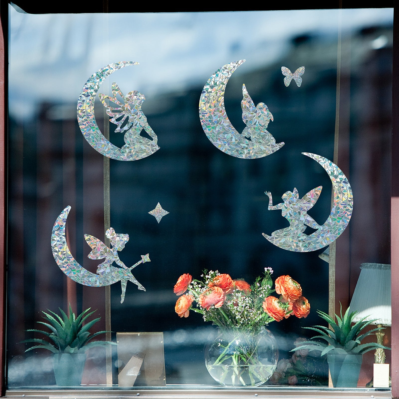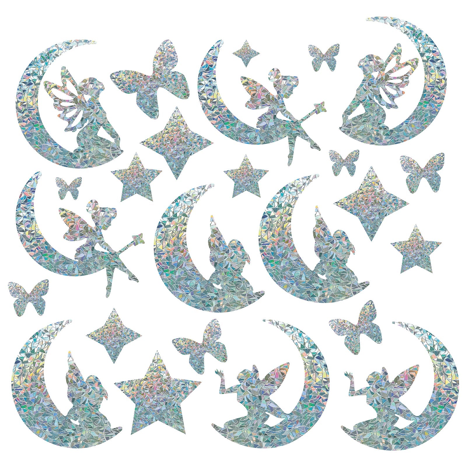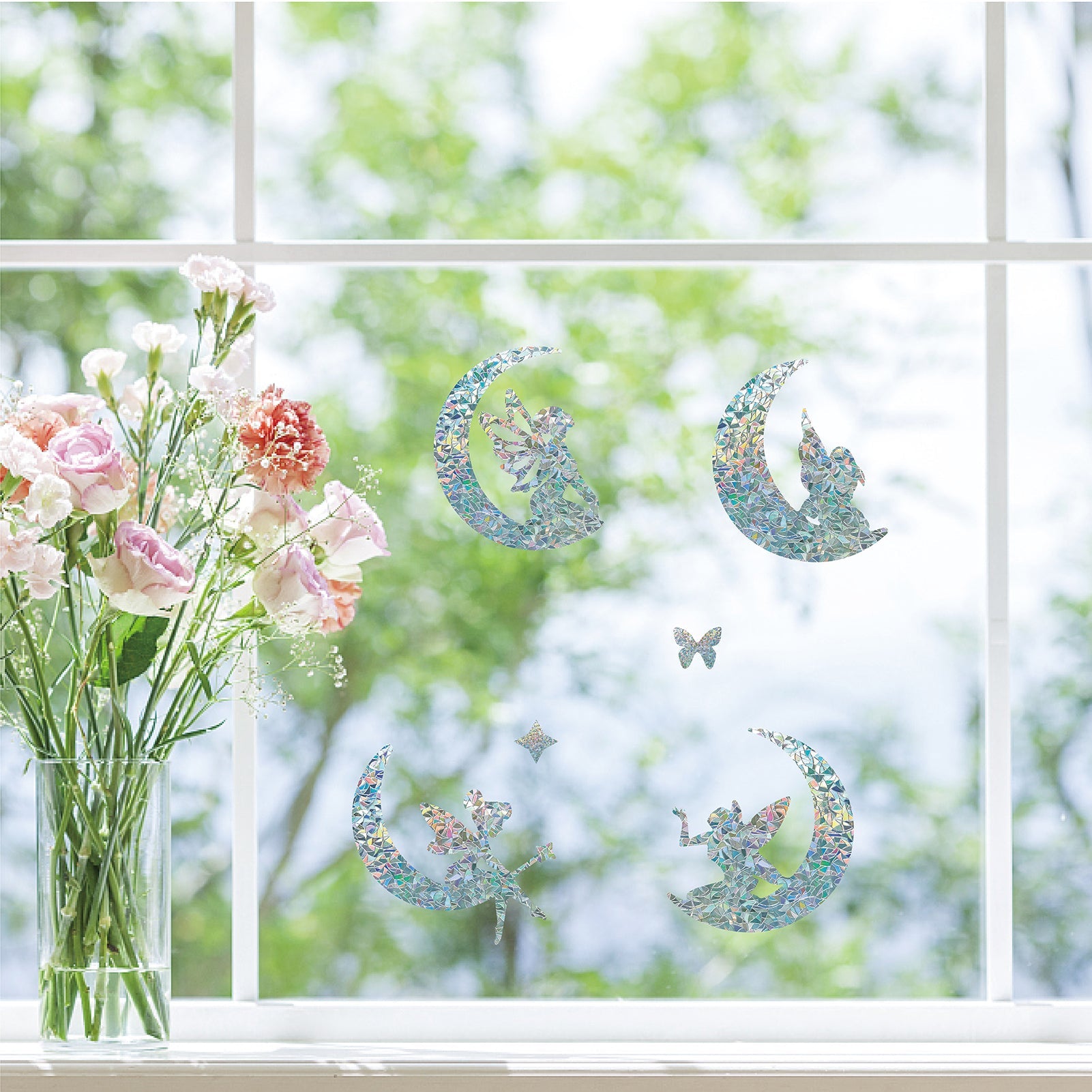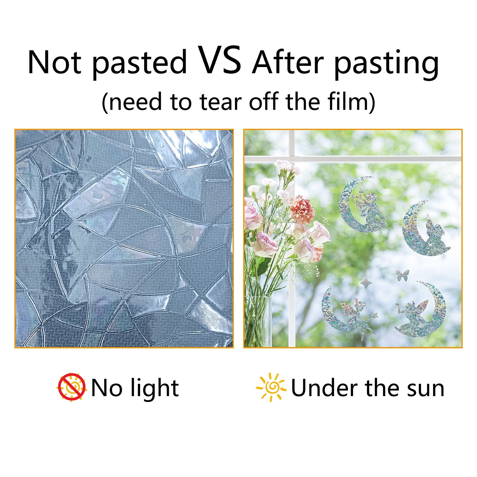 Craspire Waterproof PVC Colored Laser Stained Window Film Adhesive Stickers, Rectangle Electrostatic Window Stickers, Colorful, Angel & Fairy Pattern