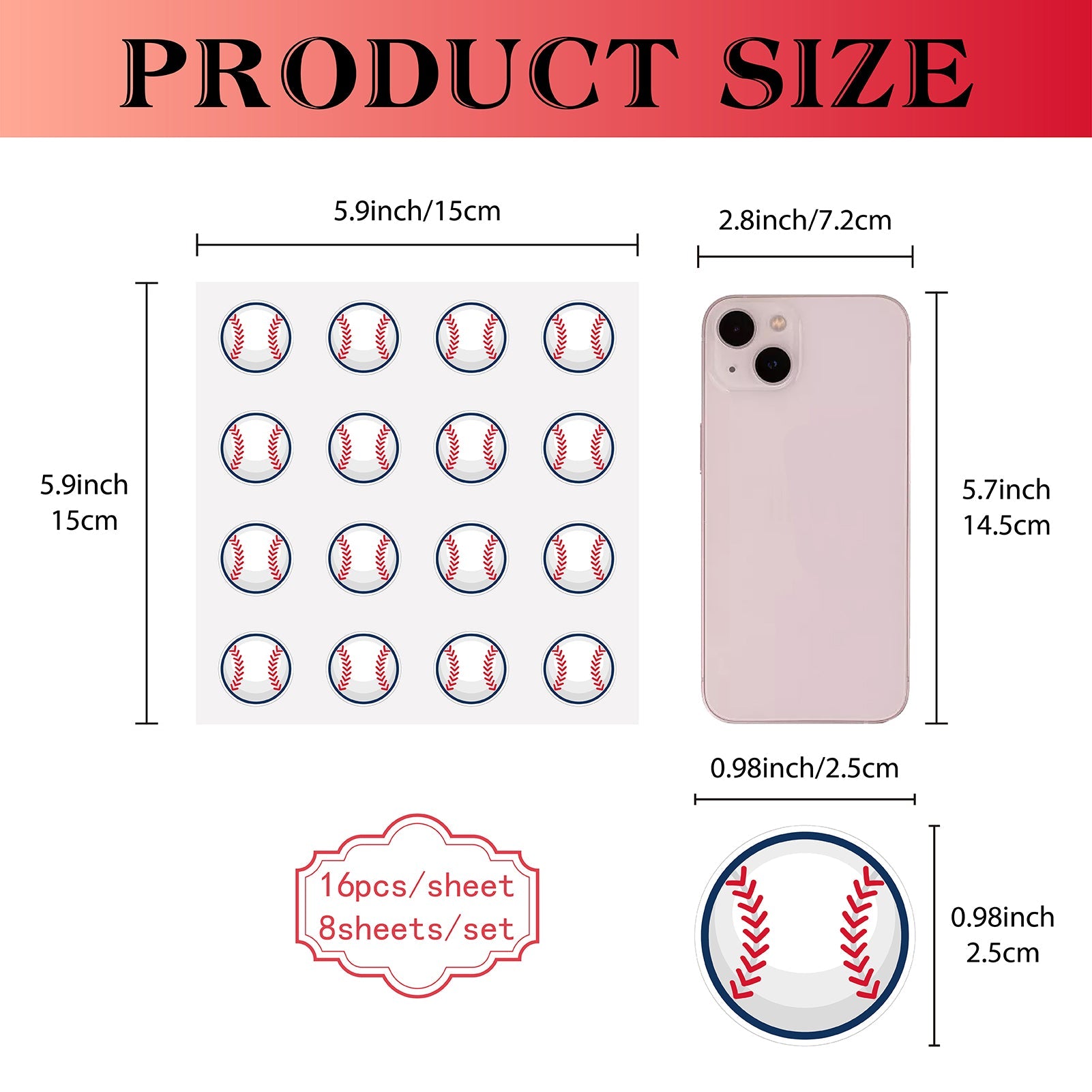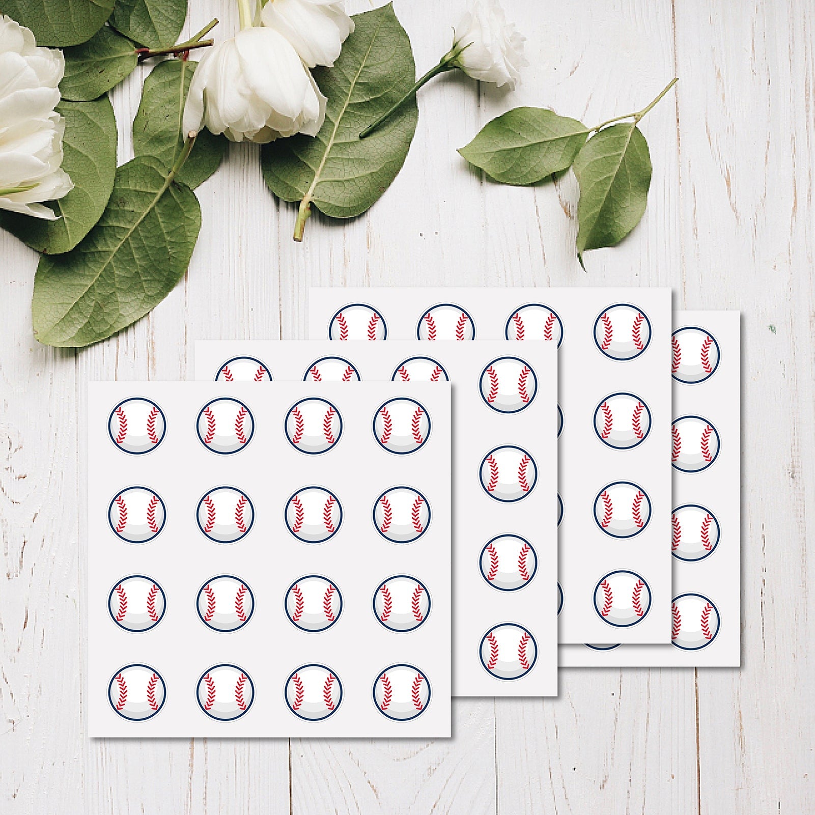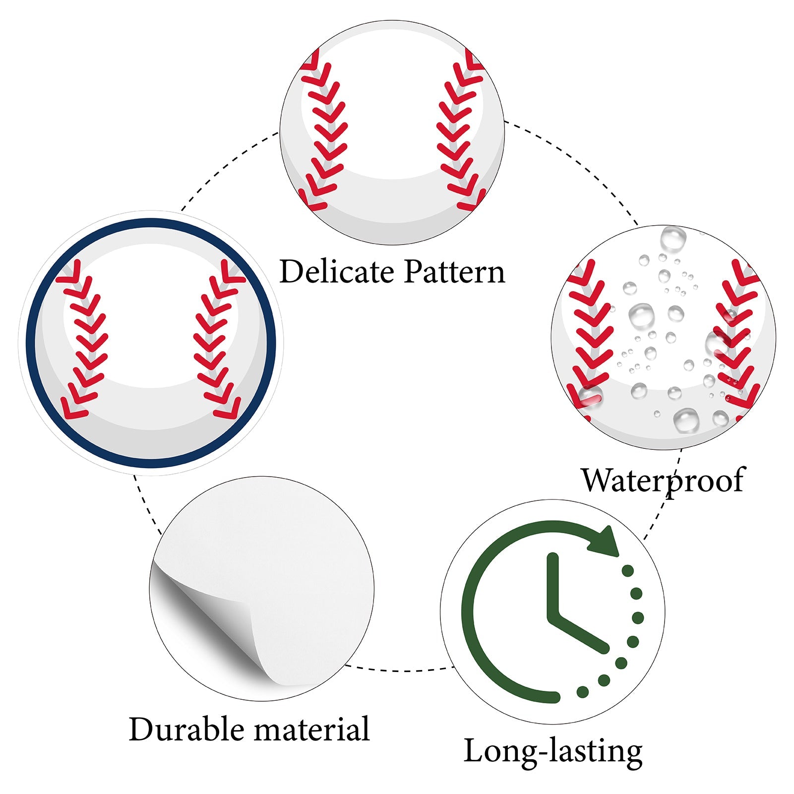 Craspire Waterproof Self-Adhesive Picture Stickers, Flat Round, Gold, Baseball Pattern