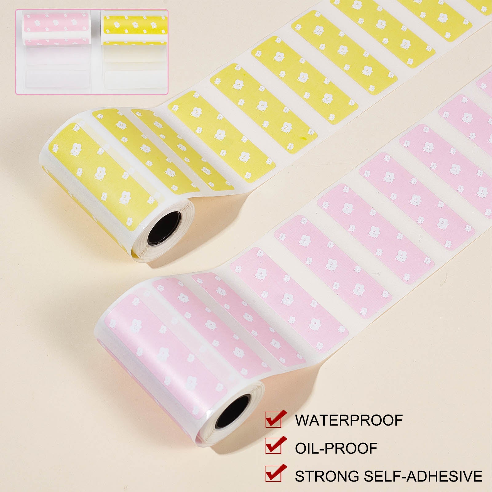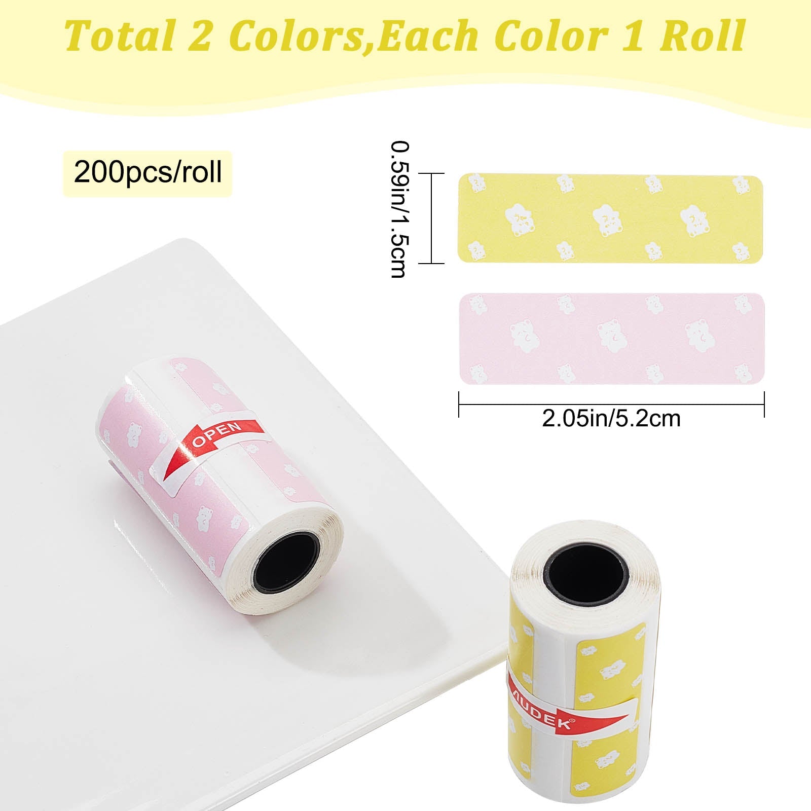 Craspire 2 Rolls 2 Colors Self-Adhesive Label Pasters, Adhesive Stickers, Bear, Mixed Color, 52x15mm, about 200pcs/roll, 1 roll/color