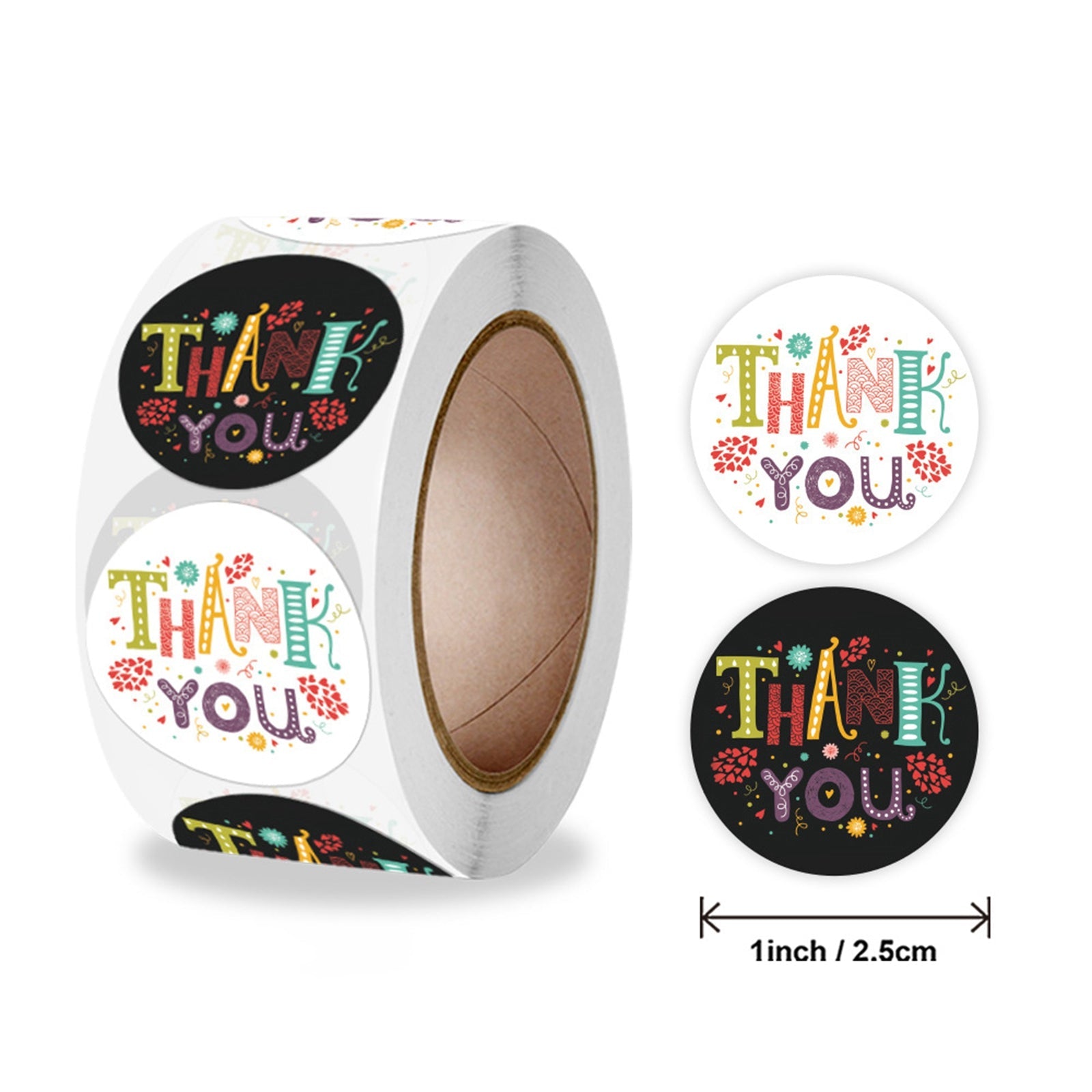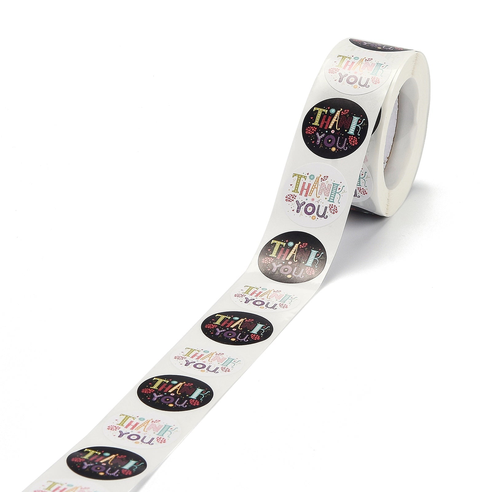 Craspire Word Thank You Self Adhesive Paper Stickers, Round Sticker Labels, Gift Tag Stickers, Mixed Color, 2.5x0.1cm, 500pc/roll