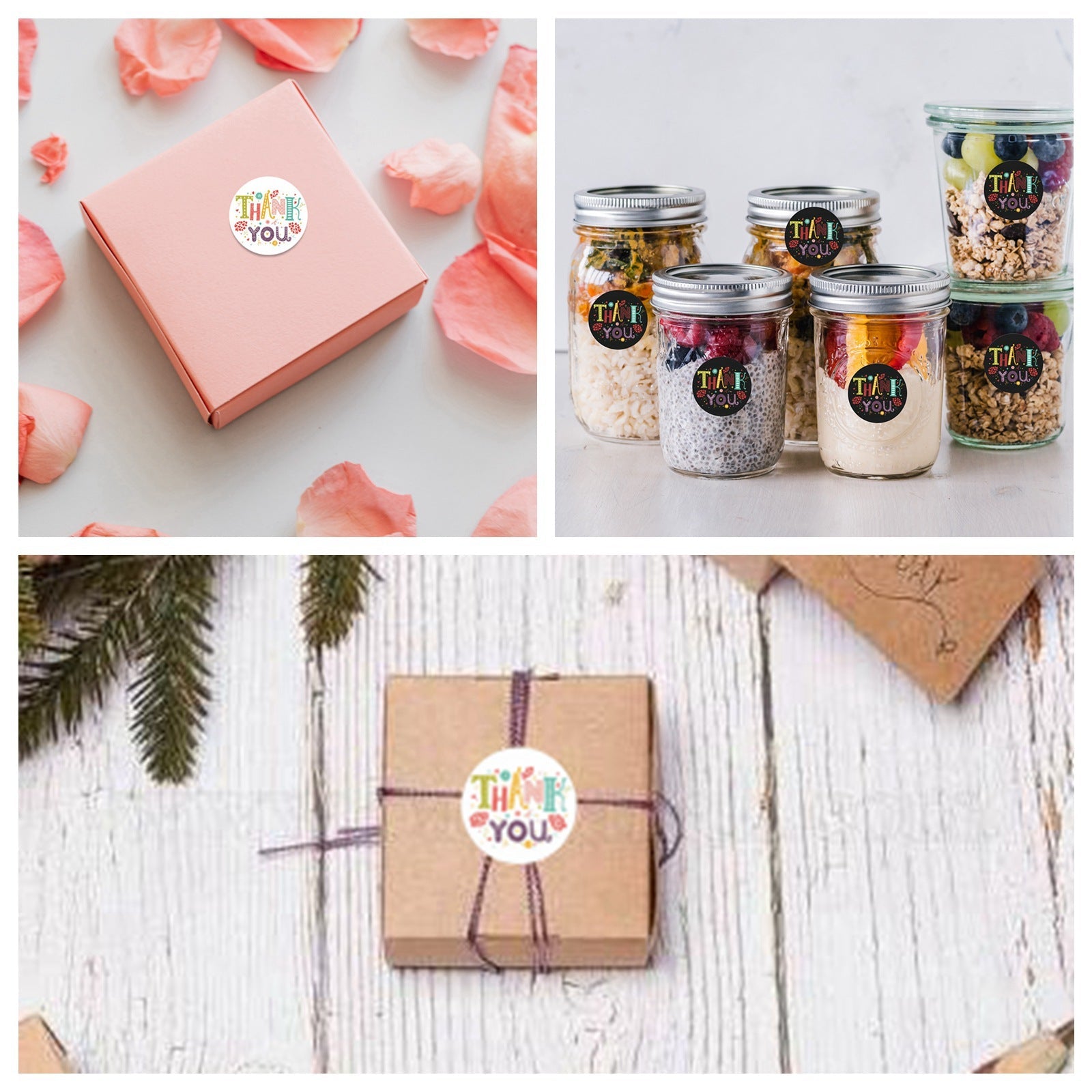 Craspire Word Thank You Self Adhesive Paper Stickers, Round Sticker Labels, Gift Tag Stickers, Mixed Color