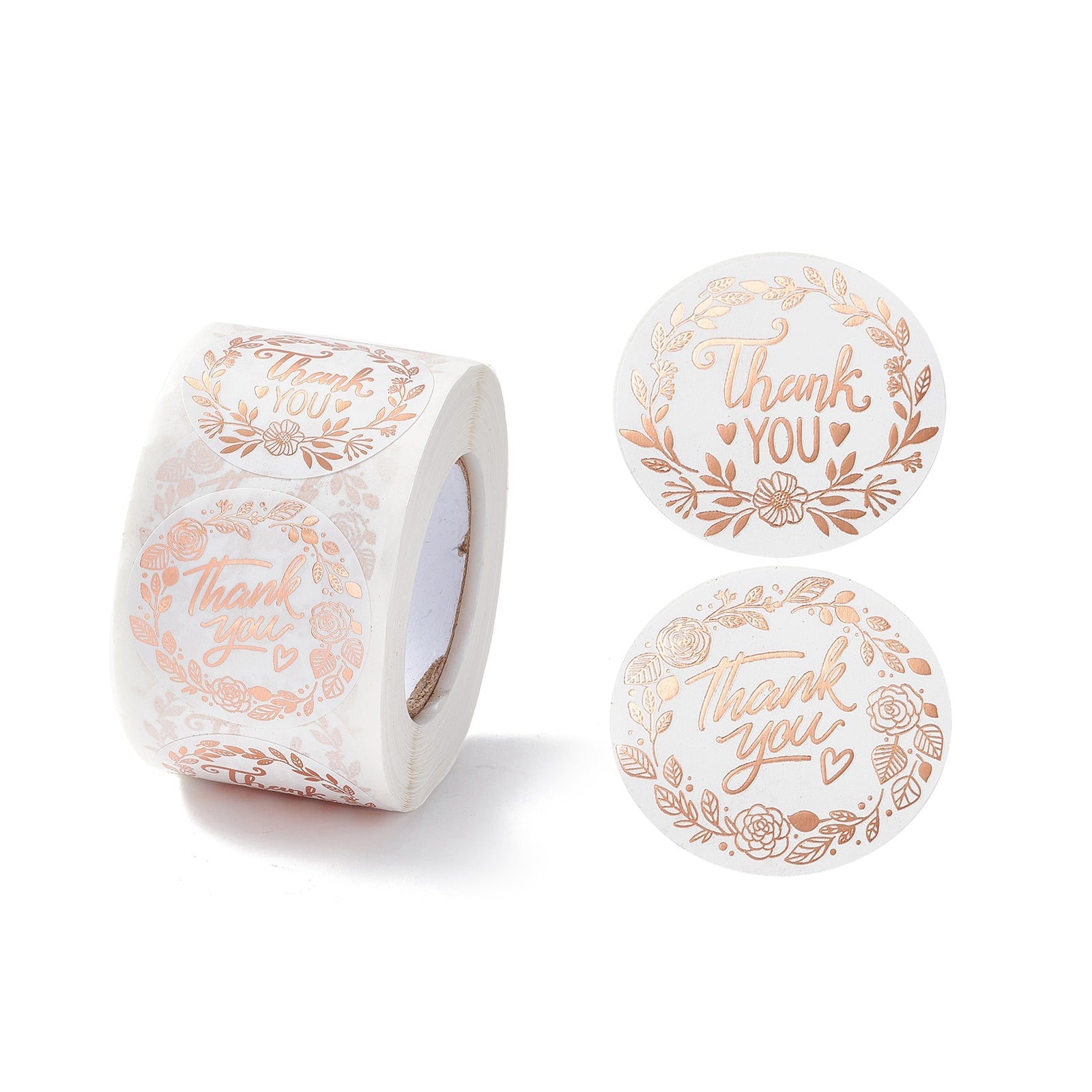 Craspire Thank You Stickers Roll, Flat Round Paper Gift Tag Stickers, Adhesive Labels Stickers, Plants Pattern, 4.2cm, Stickers: 38x0.1mm, about 500pcs/roll