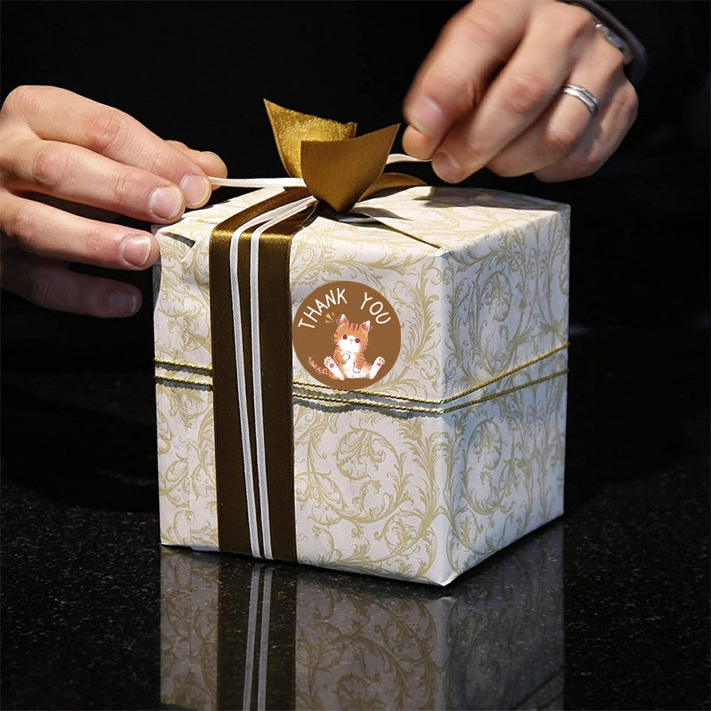 Craspire Thank You Stickers Roll, Adhesive Paper Tape, Round Stickers, for Card-Making, Scrapbooking, Diary, Planner, Envelope & Notebooks, Cat Pattern