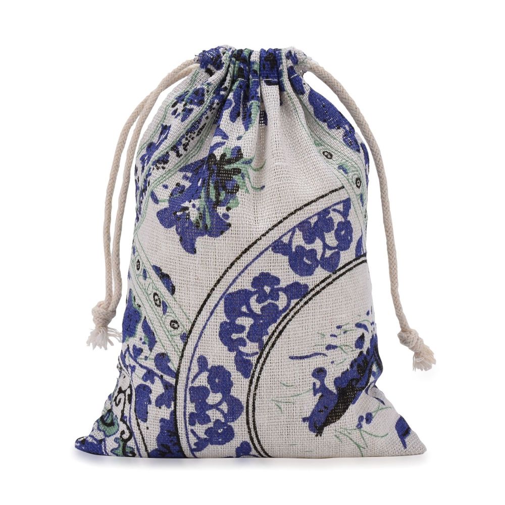 Burlap Packing Pouches, Drawstring Bags, Royal Blue