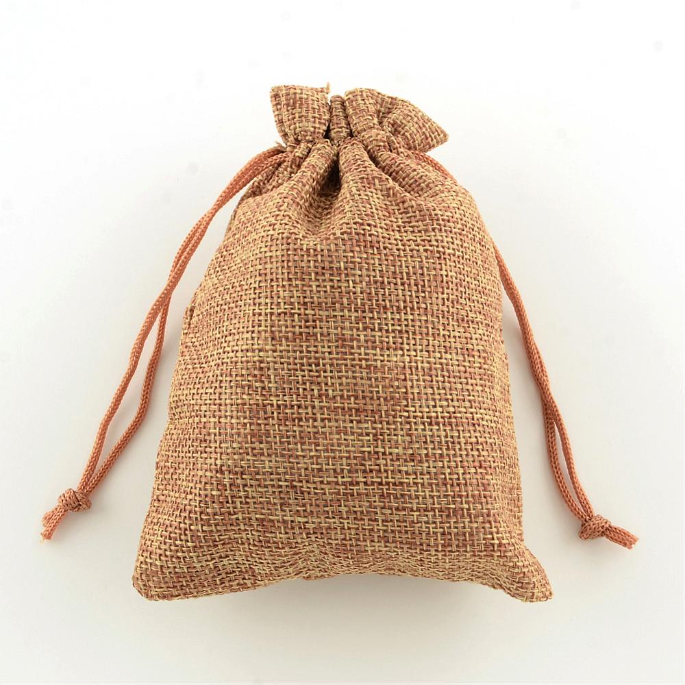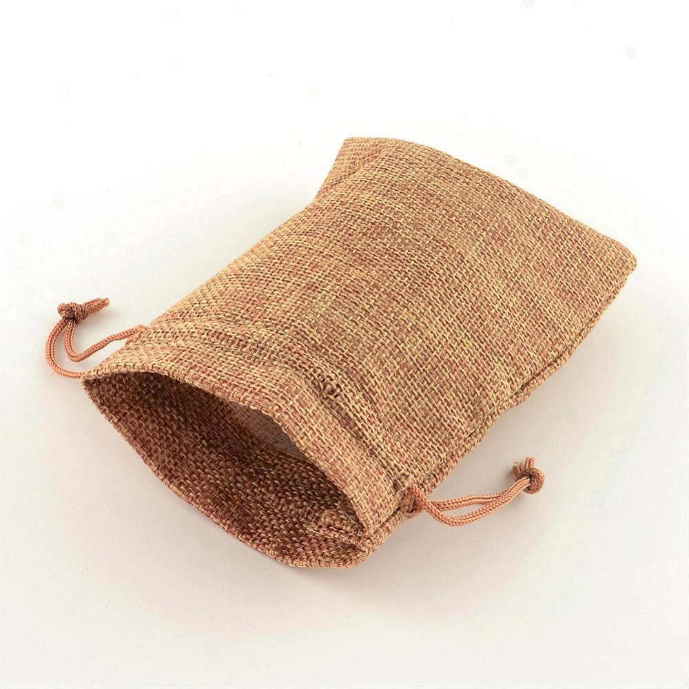 100 pc Polyester Imitation Burlap Packing Pouches Drawstring Bags, Peru, 18x13cm