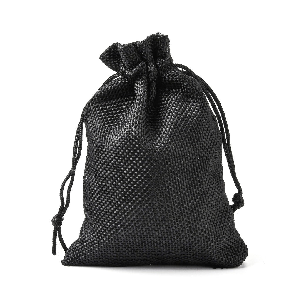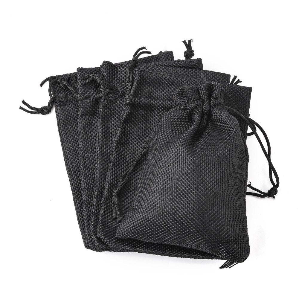 Polyester Imitation Burlap Packing Pouches Drawstring Bags, for Christmas, Wedding Party and DIY Craft Packing, Black