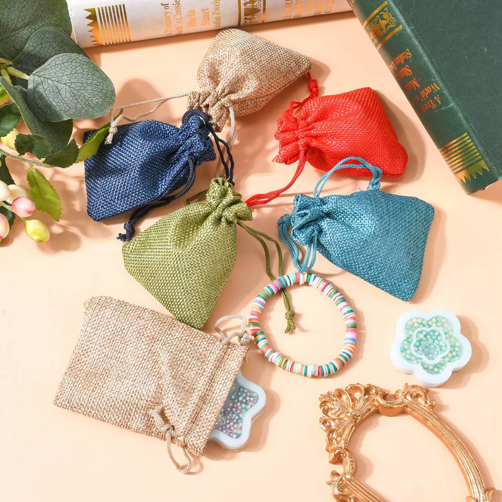 Polyester Imitation Burlap Packing Pouches Drawstring Bags, for Christmas, Wedding Party and DIY Craft Packing, Mixed Color