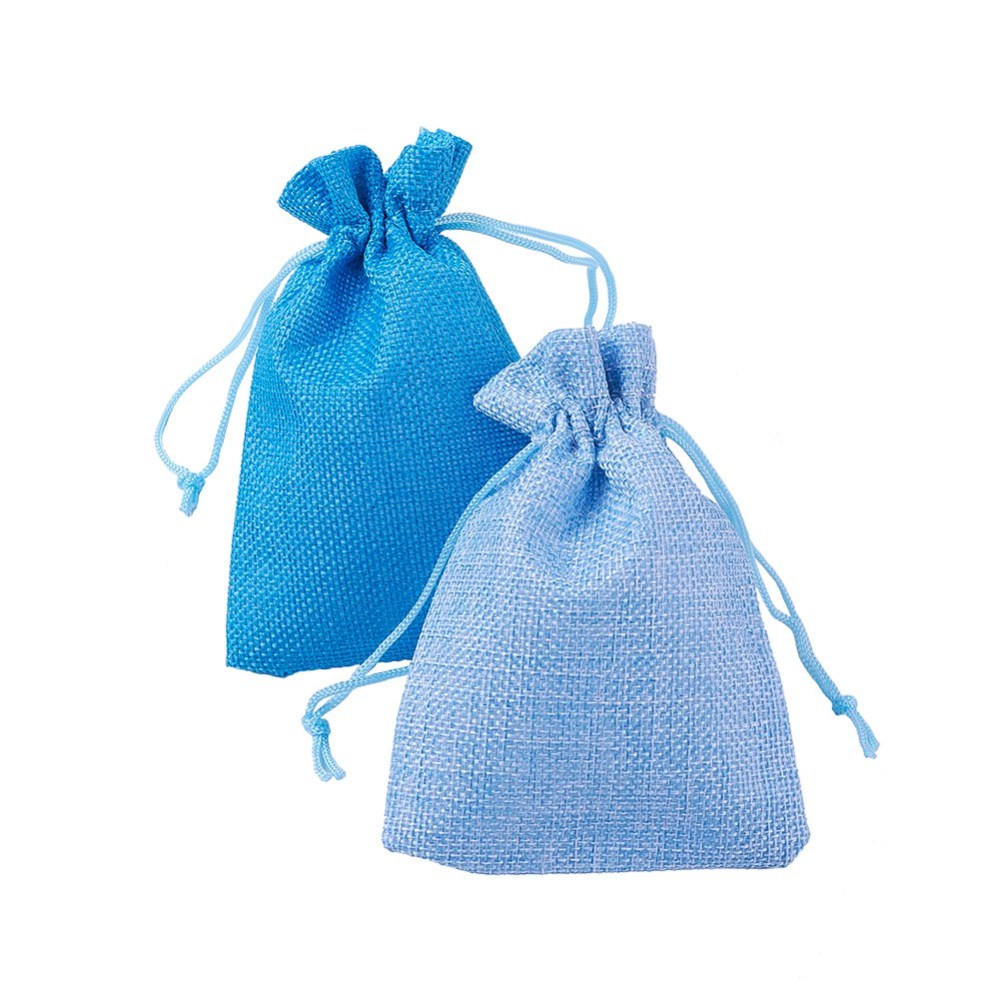 5 Colors Blue Burlap Packing Pouches, Drawstring Bags, Blue